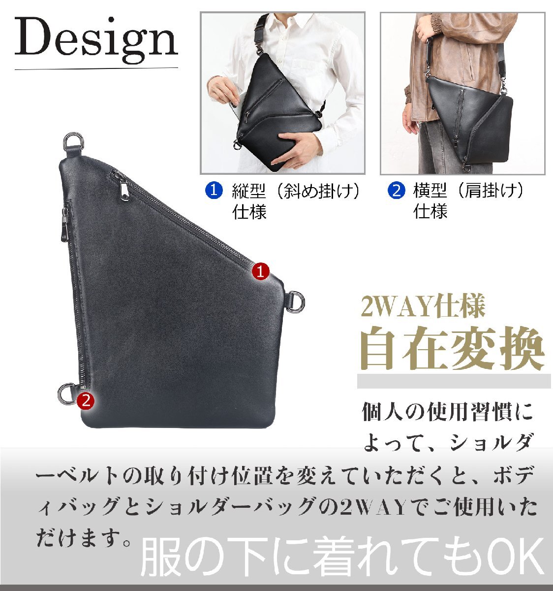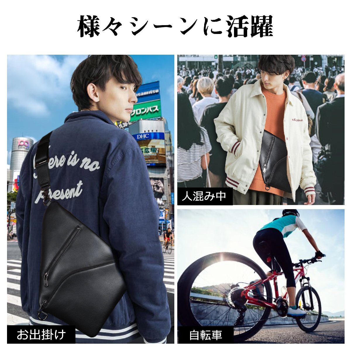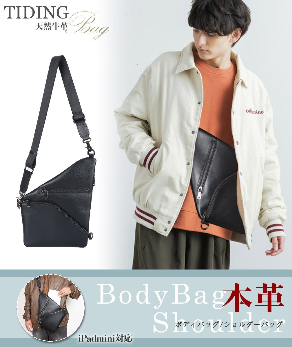 TIDING 薄型 本革 ボディバッグ メンズ ワンショルダーバッグ 斜め掛け 服下着れる 大容量 iPadmini対応 ブラック