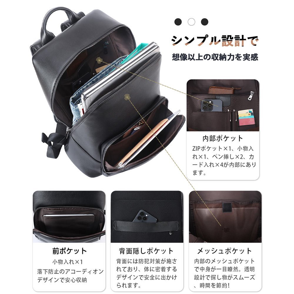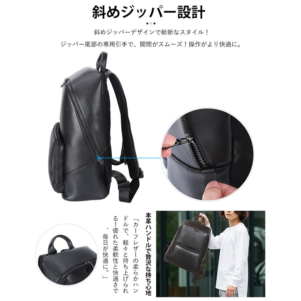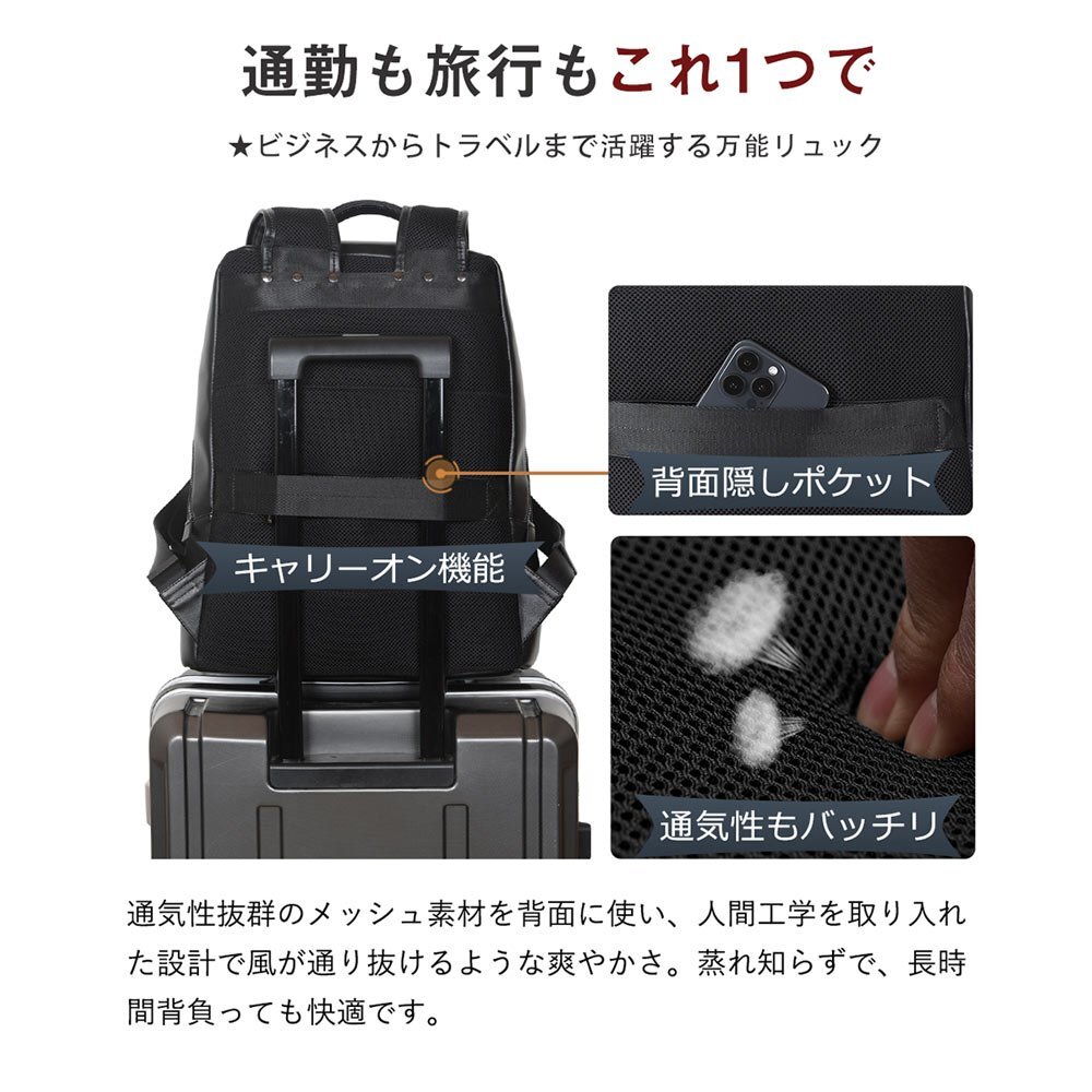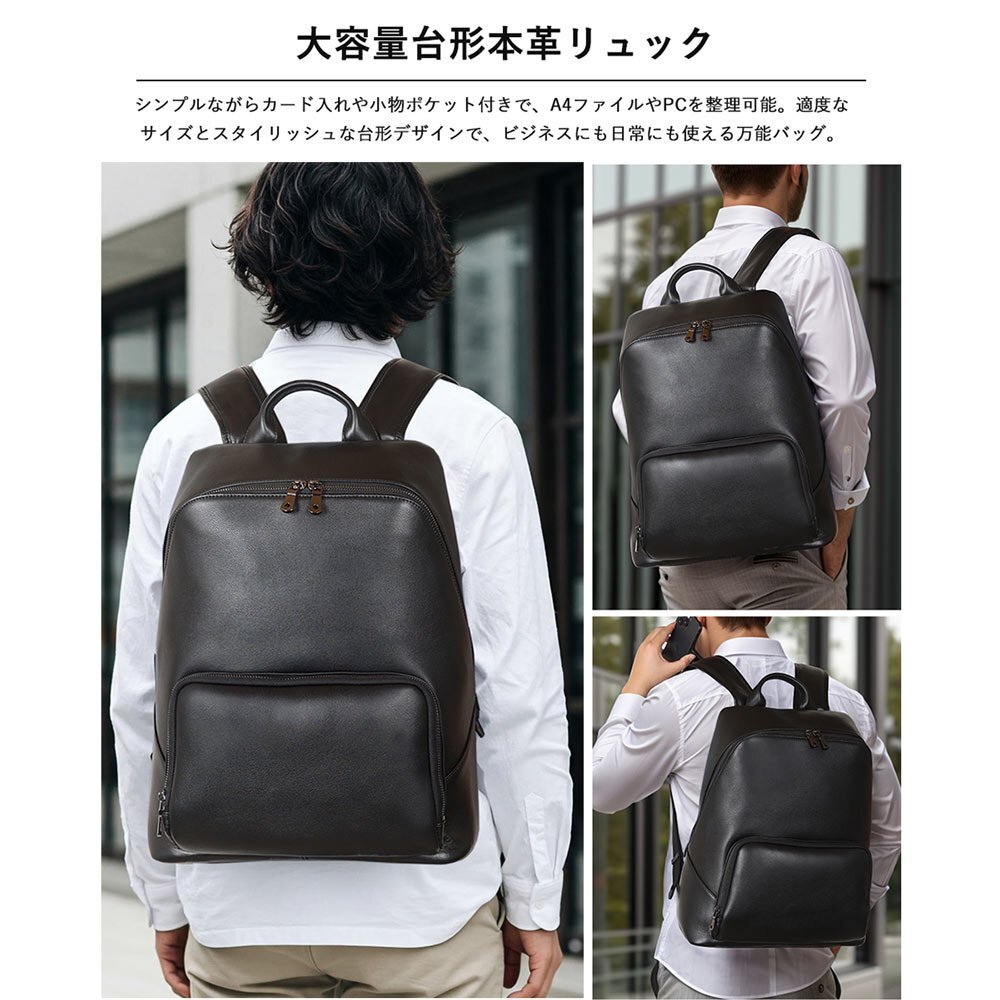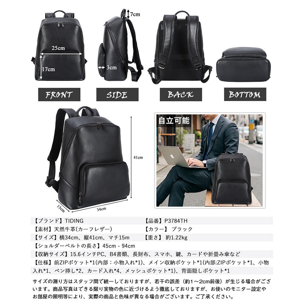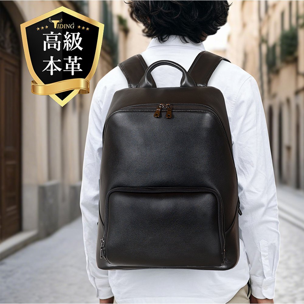 TIDING ビジネス リュックサック メンズ 本革 台形 A4 15.6PC 撥水 キャリーオン対応 男女兼用 バックパック 通勤通学 出張 旅行 ブラック