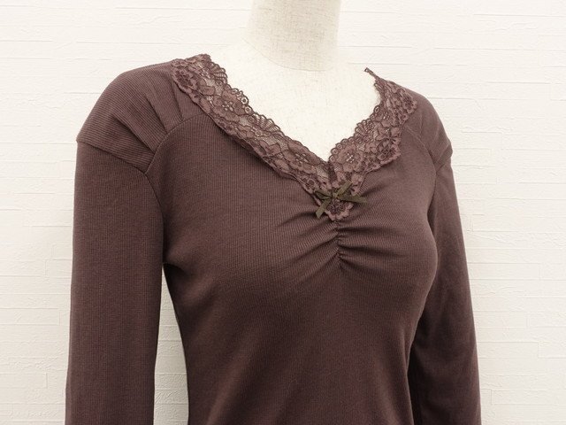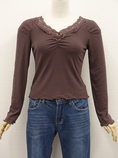 長袖 Vネック カットソー F ブラウン 【メール便可】