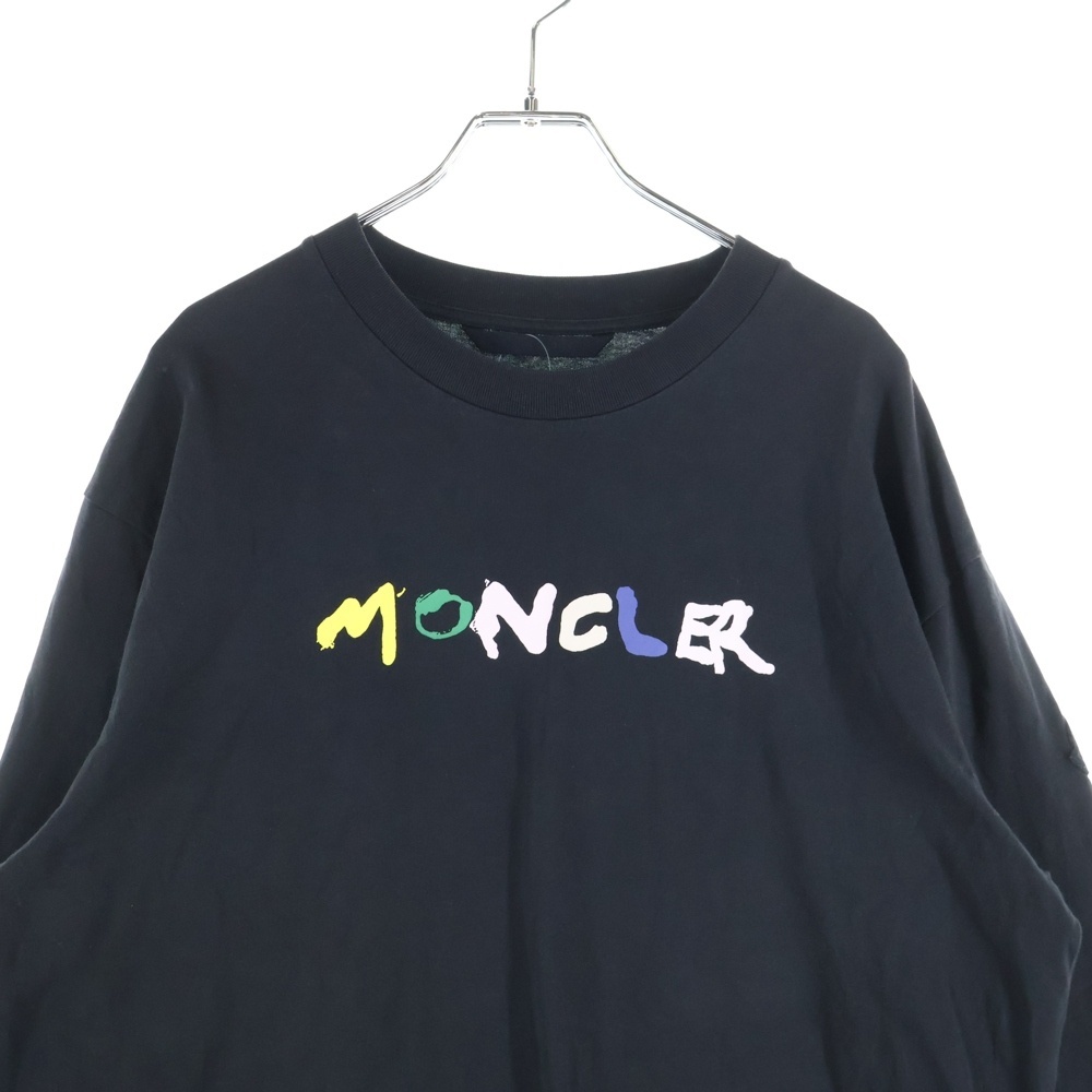 モンクレール 24SS マルチカラーロゴプリント ワッペン クルーネック ロングスリーブ 長袖Tシャツ カットソー ブラック J10918D00012 829HP
