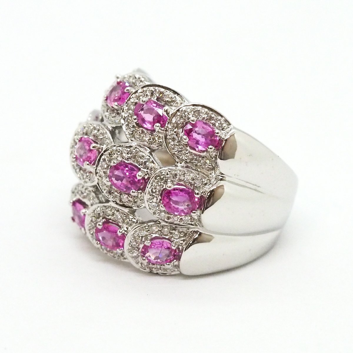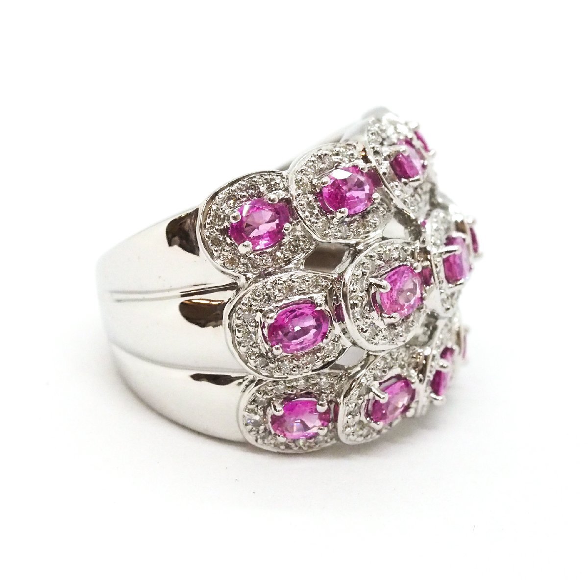 | 商品名 | K18WG 天然コランダム ピンク・サファイヤ 2.40ct メレダイヤモンド 0.50ct 付 ホワイトゴールド リング 14.2g 15.5号 |