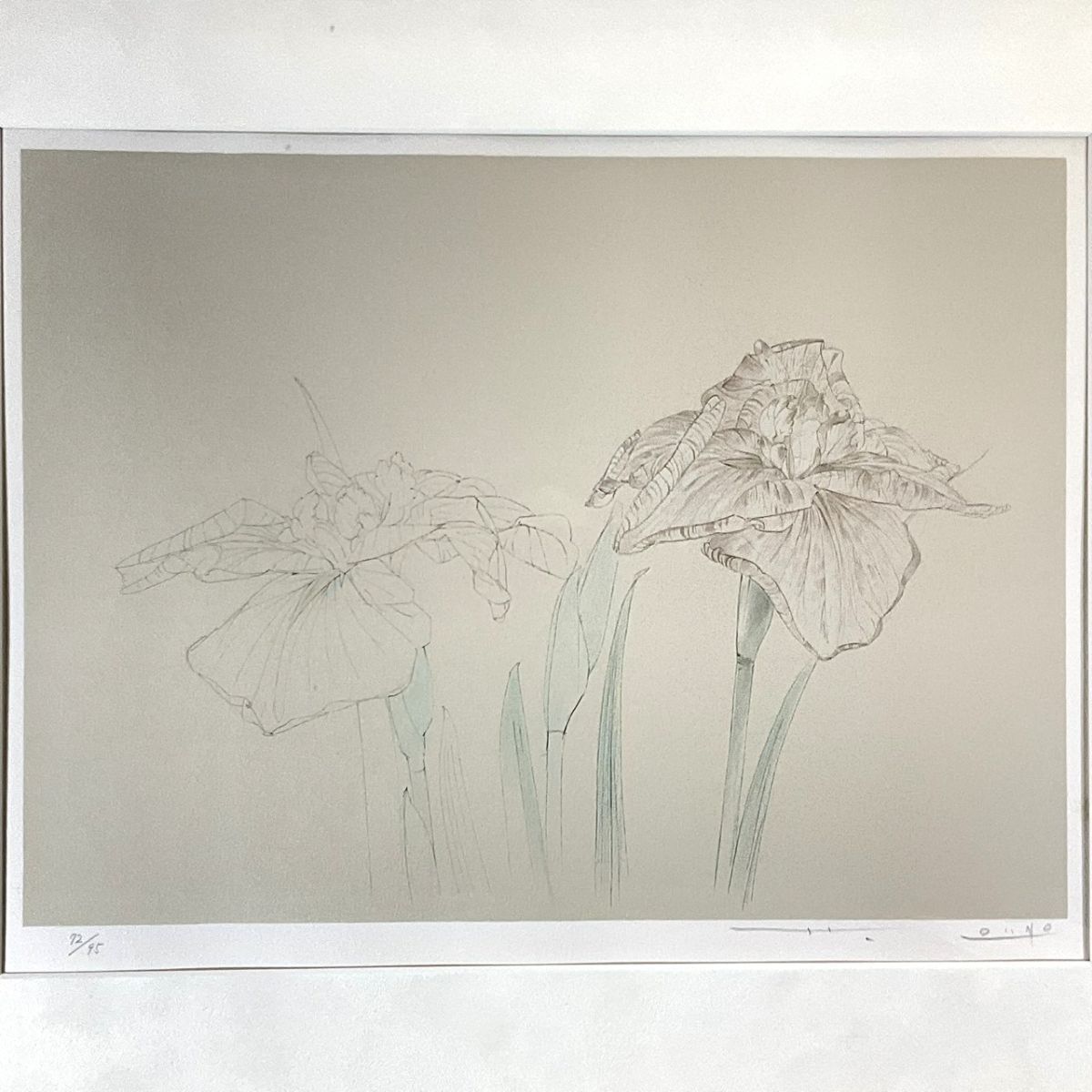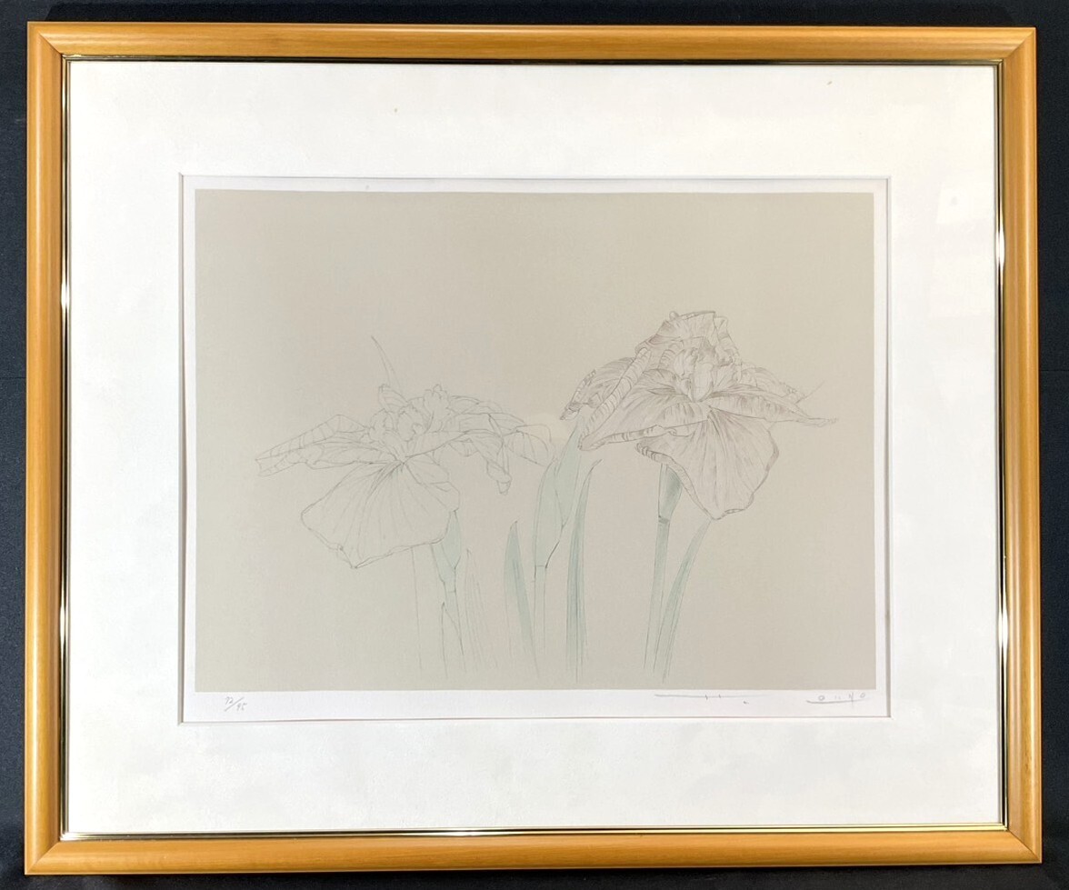 真作■リトグラフ■大野俶嵩■『花菖蒲』■京都市立芸大名誉教授 海外高評価巨匠■額付絵画