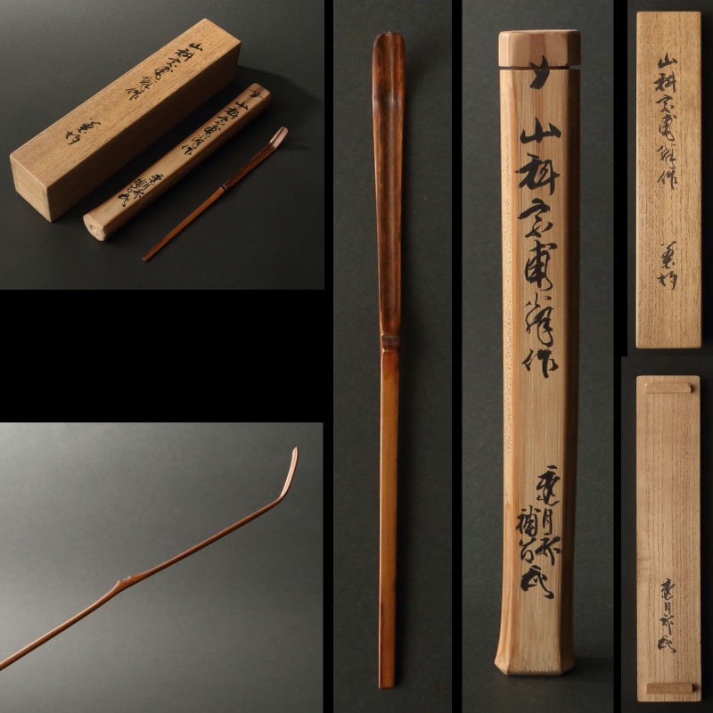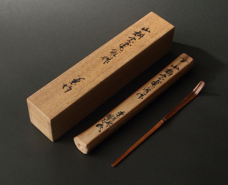 委託HK◇山科宗甫 竹茶杓 藪内透月斎書付(茶道具 竹工芸 抹茶 茶入 茶器 棗 茶人 茶道 藪内流 竹窓 千少庵次男 茶事 茶席 茶の湯 古物)