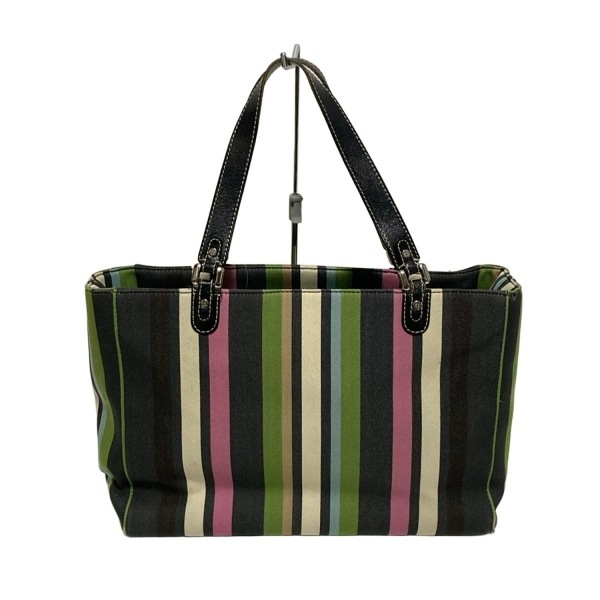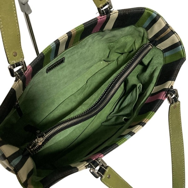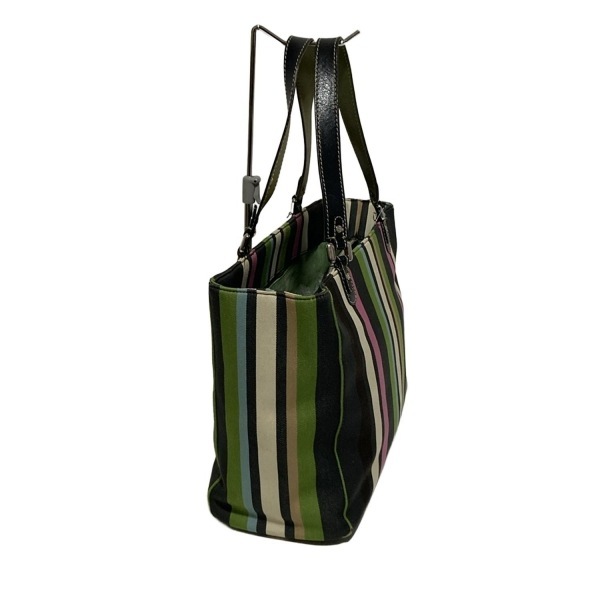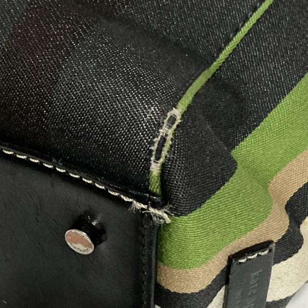 ケイトスペード Kate spade トートバッグ - コットン、レザー グリーン×黒×マルチ ストライプ バッグ