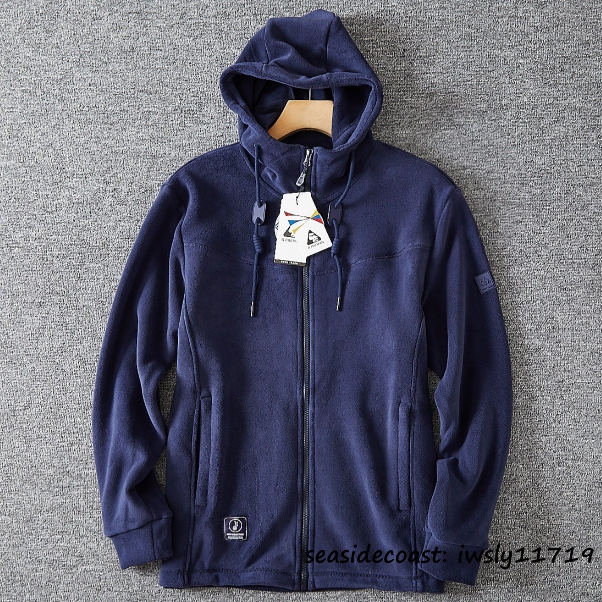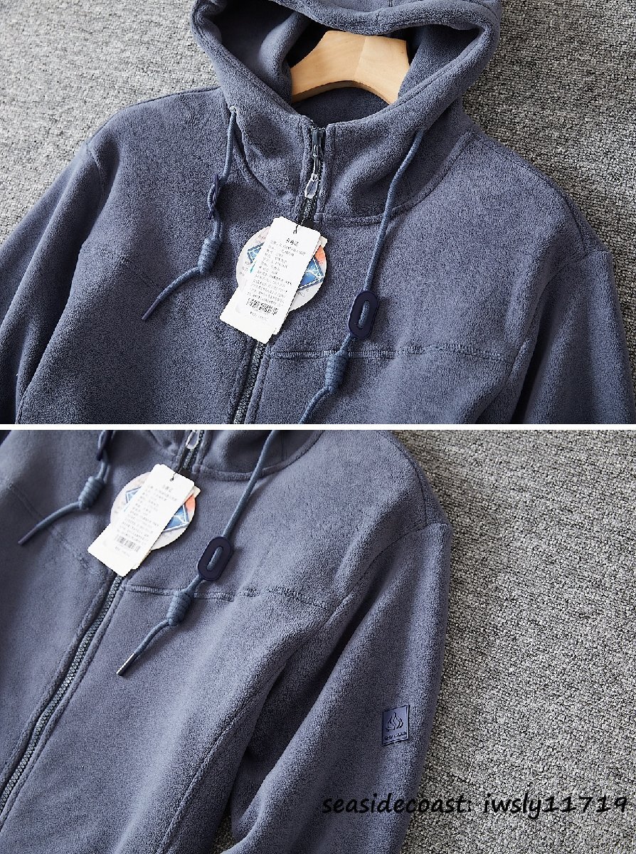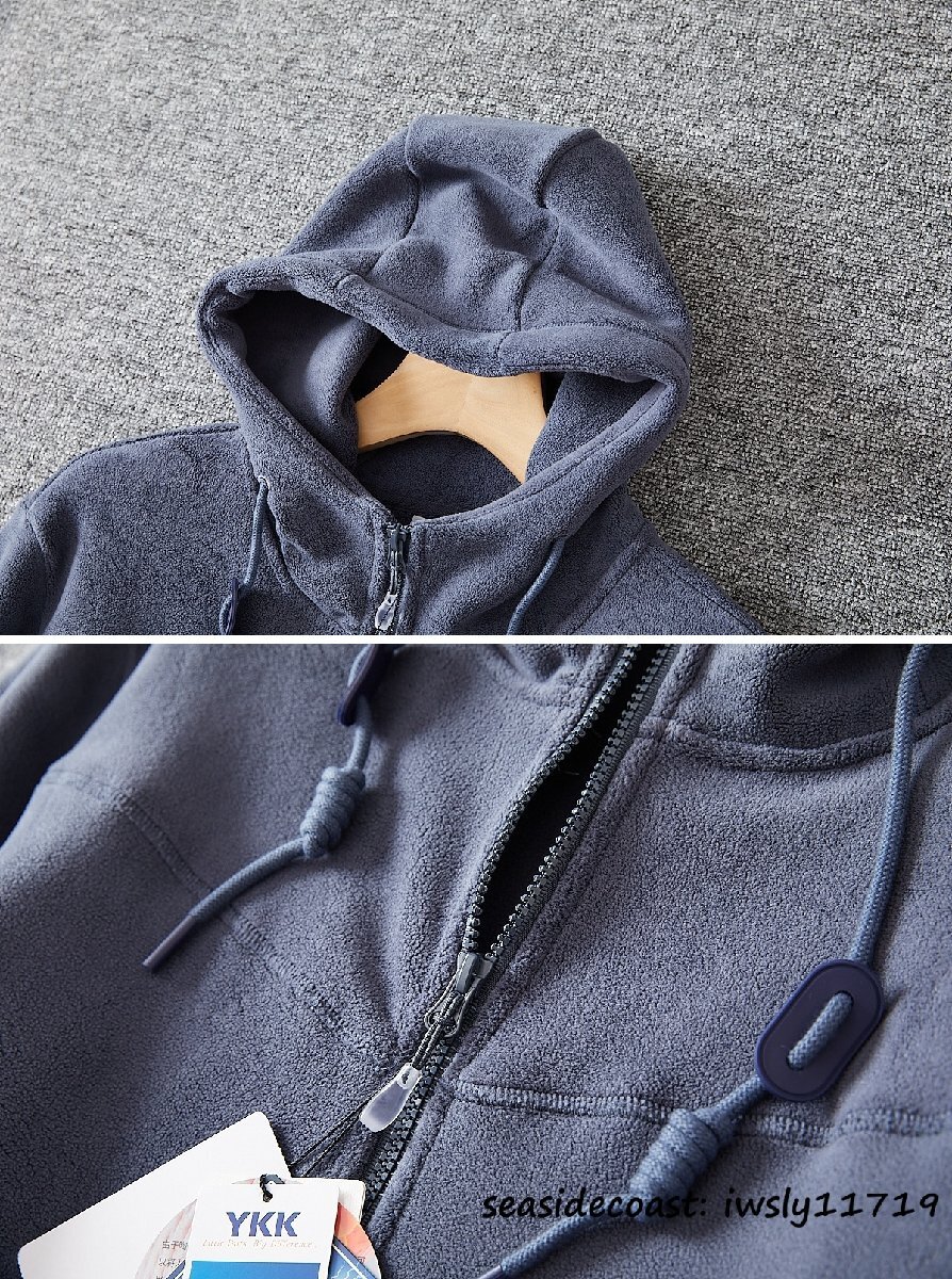 秋冬新作&パーカージャケット メンズ フード付き 両面フリース ジャケット ブルゾン 厚手 防風 アウトドア アウター 男女兼用 ネイビー 2XL