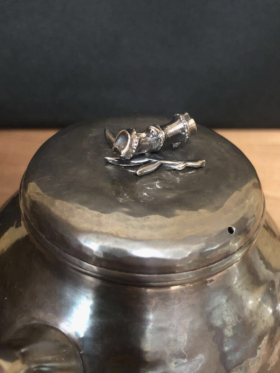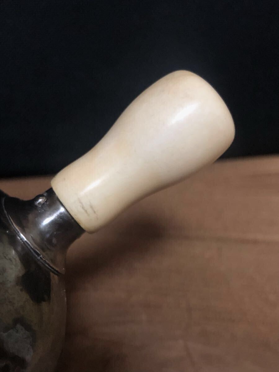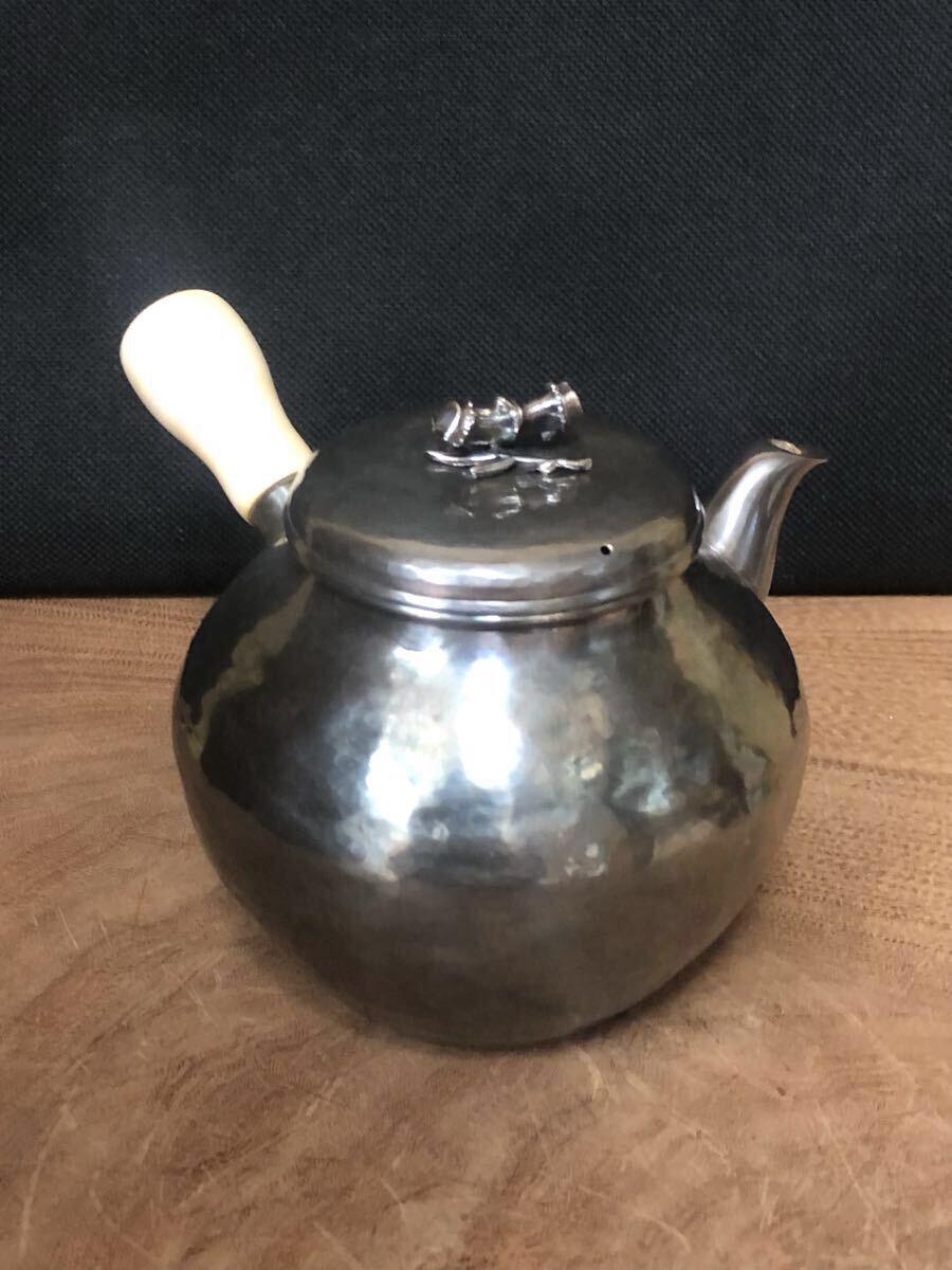 胴部の打出し紋・『竹根』意匠の摘みの細工が秀逸で、牙製の持ち手など姿・細工とも申し分なく、金工師の技術の高さが垣間見えます。