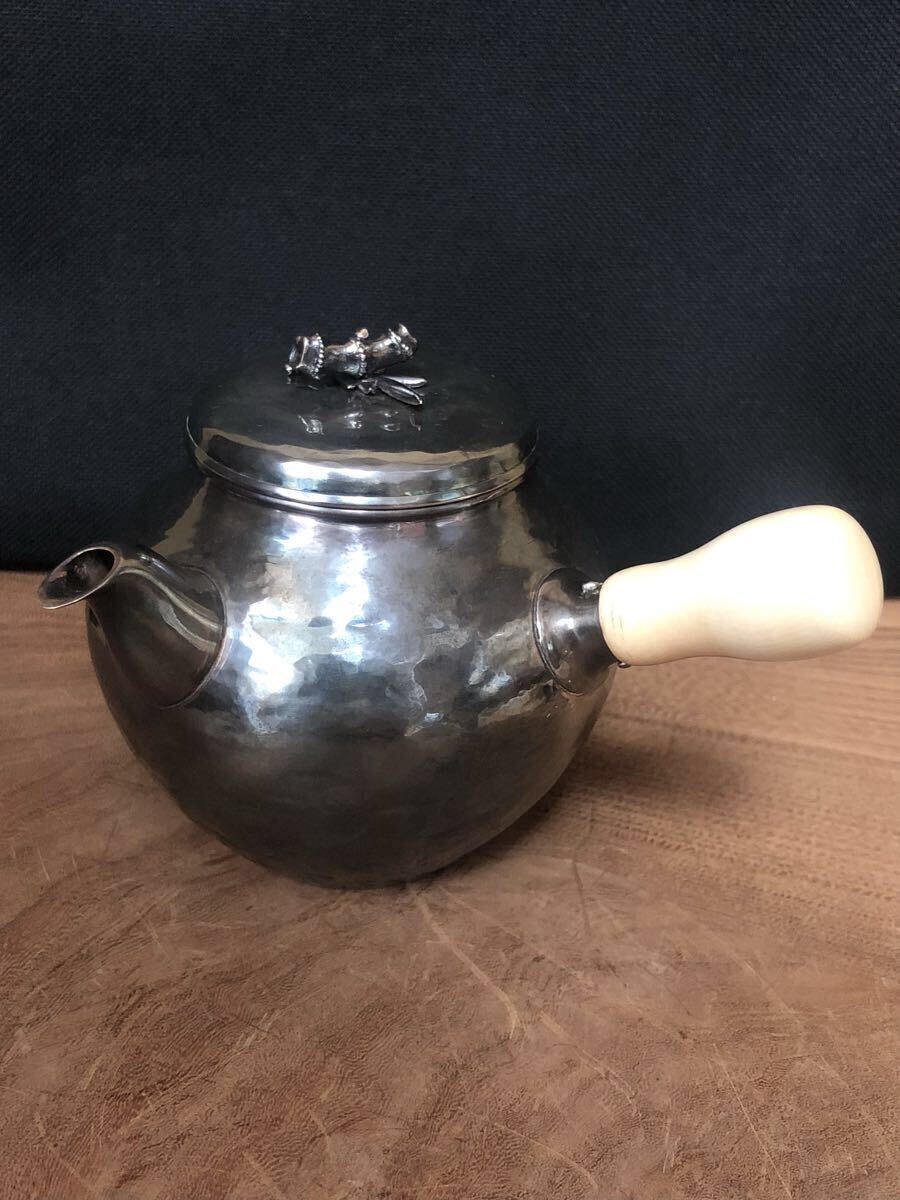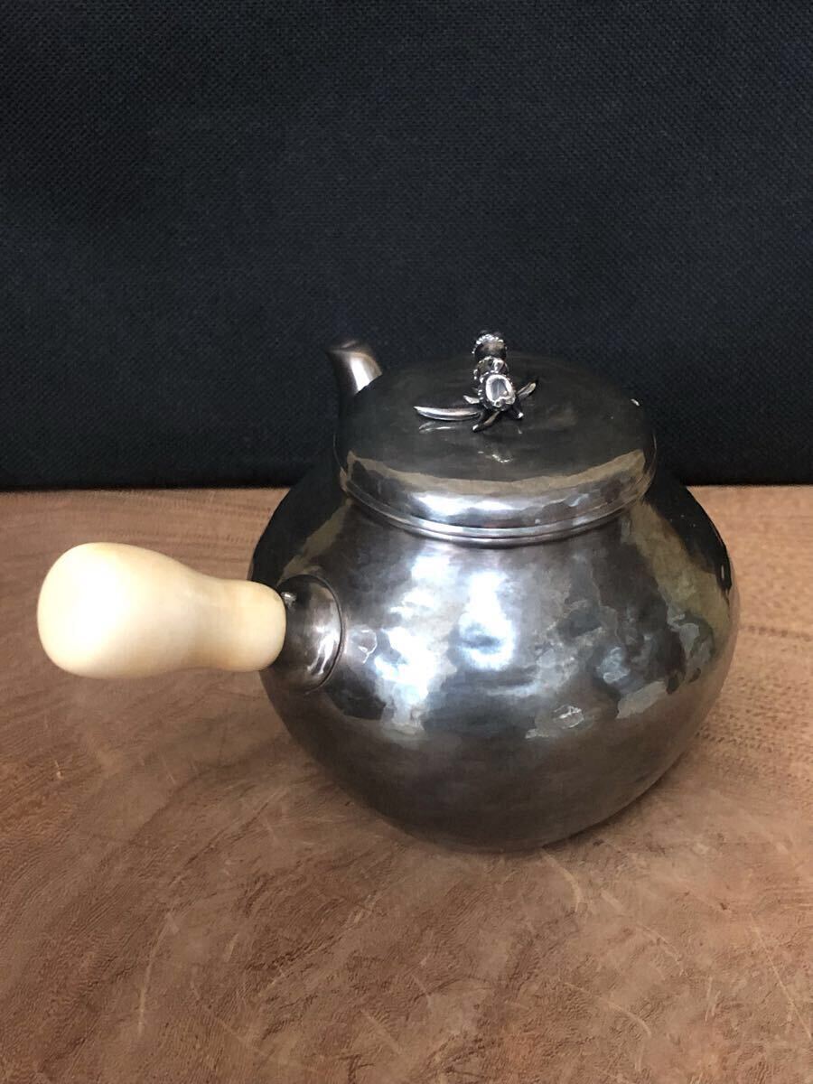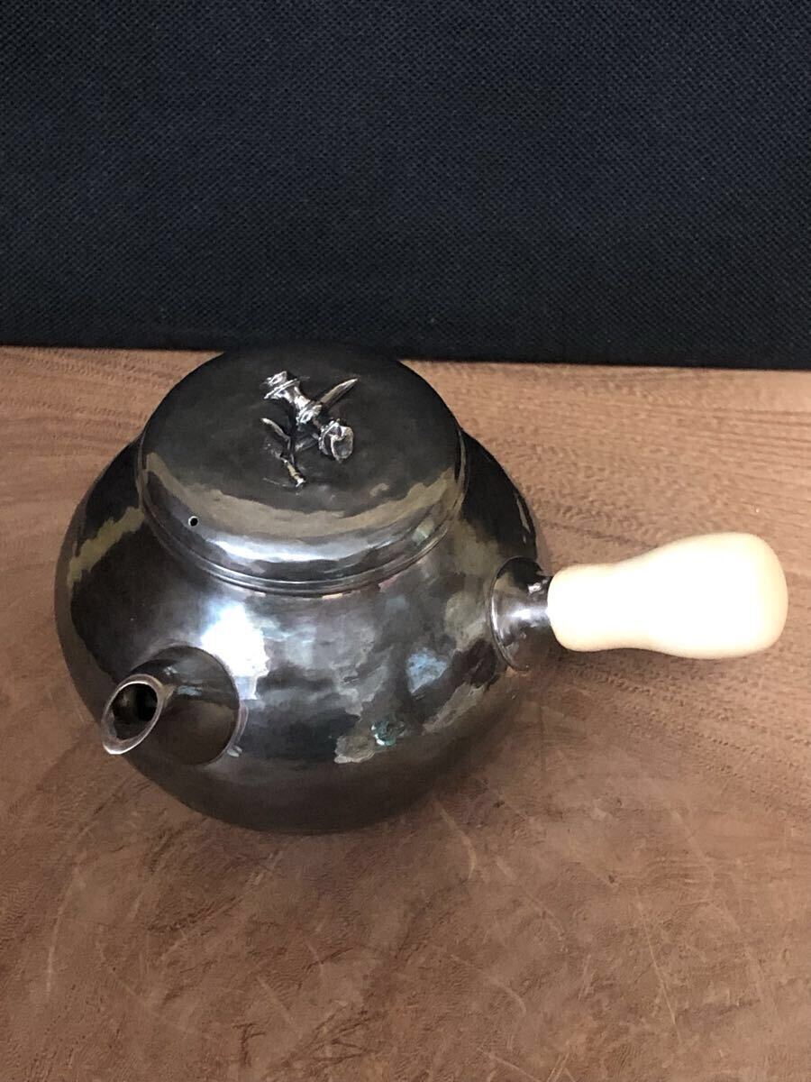 胴部の打出し紋・『竹根』意匠の摘みの細工が秀逸で、牙製の持ち手など姿・細工とも申し分なく、金工師の技術の高さが垣間見えます。