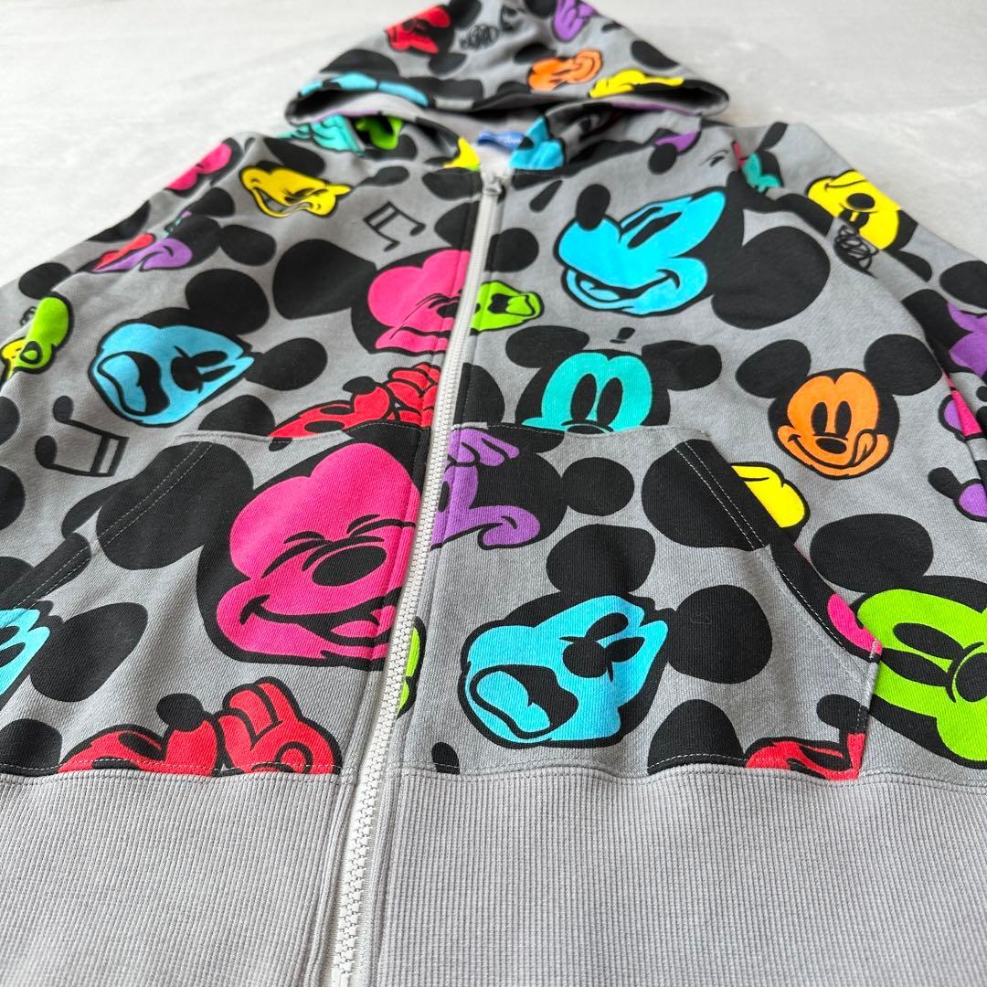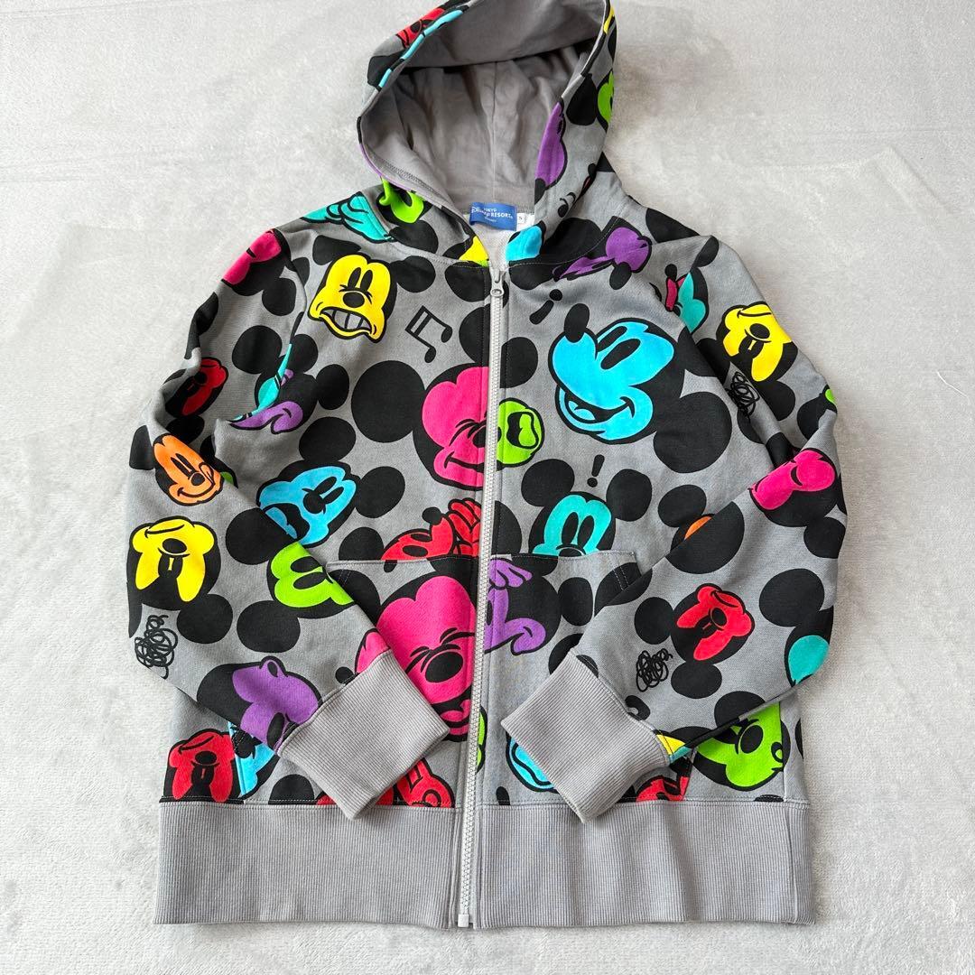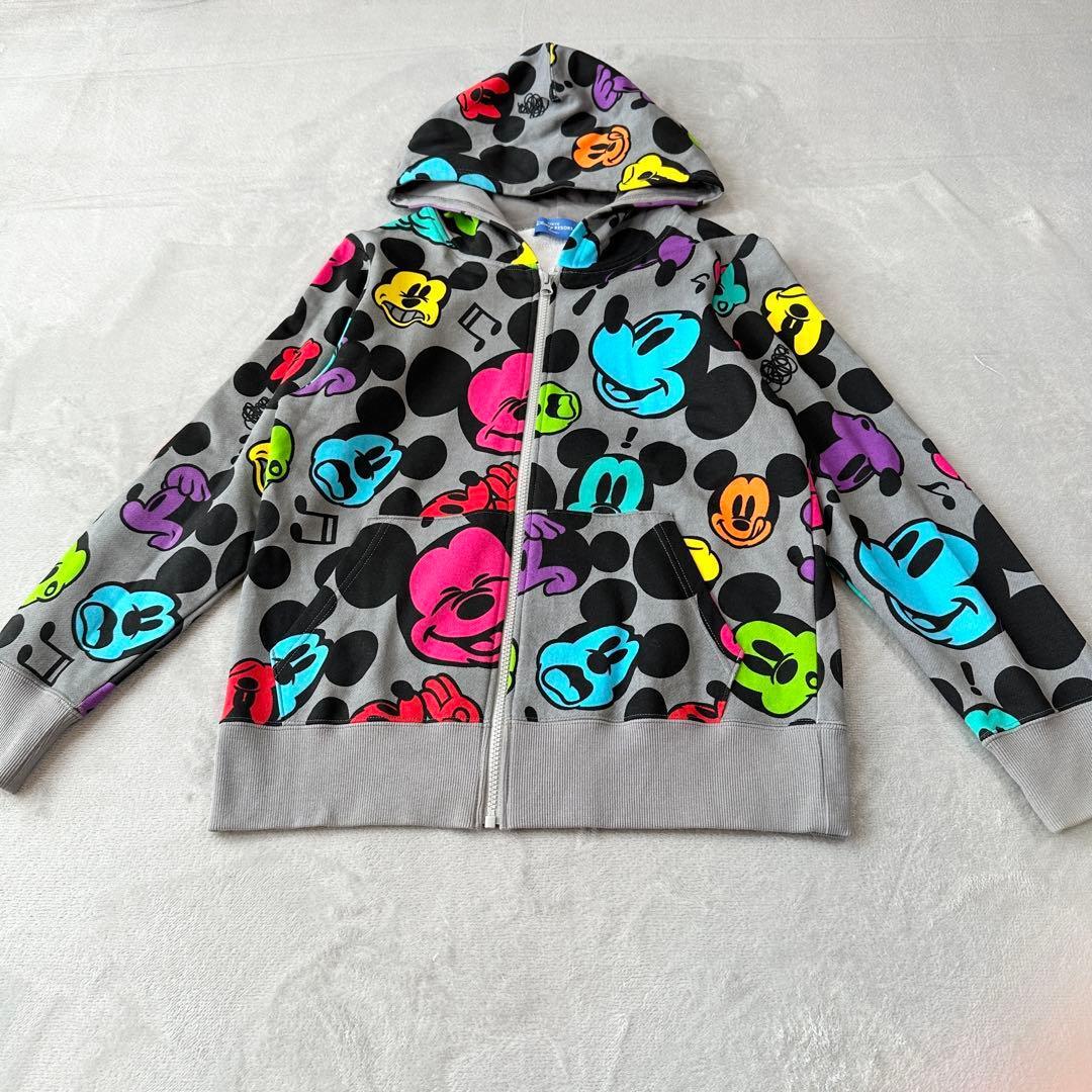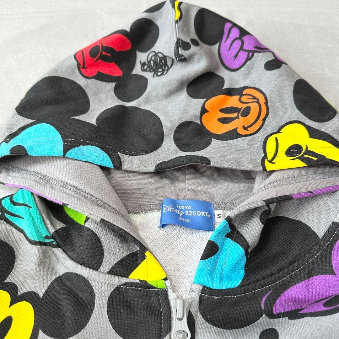 美品 東京ディズニーリゾート ミッキーマウス 総柄パーカー ジップアップ S 321A12