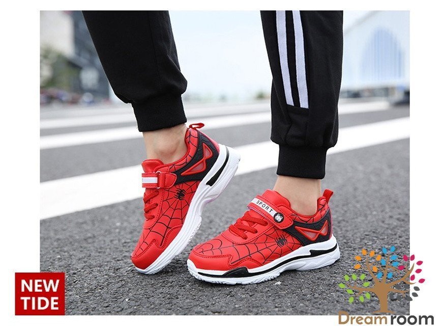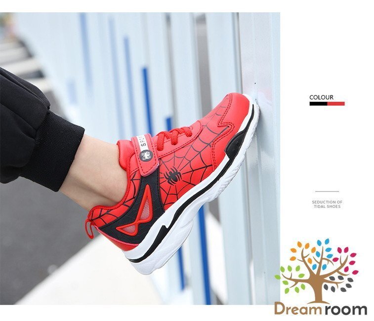 1スタ☆スムース素材 スパイダー デザインスニーカー 【レッド 19cm】 韓国子供服 キッズ シューズ 子供用 男女