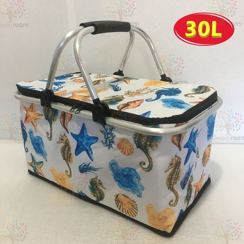 保冷・保温 機能付き 30L 折りたたみ式 エコバッグ【F-215-11】大容量 バスケット 買い物かご 断熱バッグ屋外 ピクニック