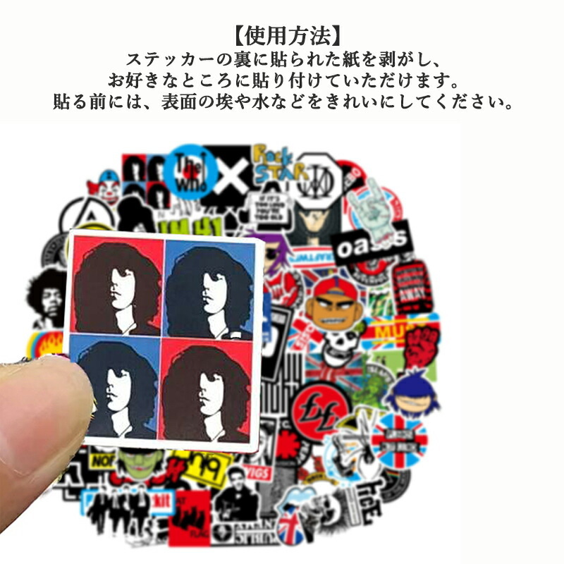 【仕様】およそ4-10センチのサイズで、写真と同じく、繰り返さない100枚のロックステッカーセットです。