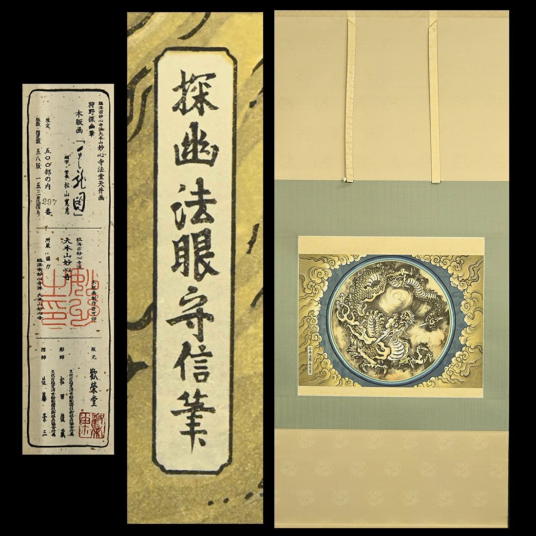 【永】b137【兵庫県の図書館や博物館の館長を歴任された歴史研究家遺族委託品】掛軸【木版画】 狩野探幽 雲龍図幅 優品日本画