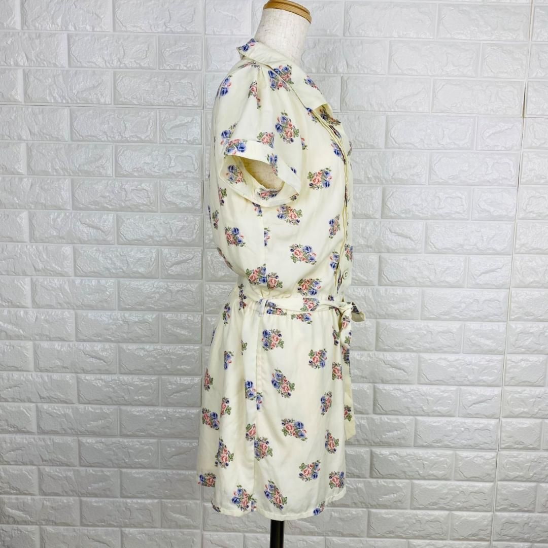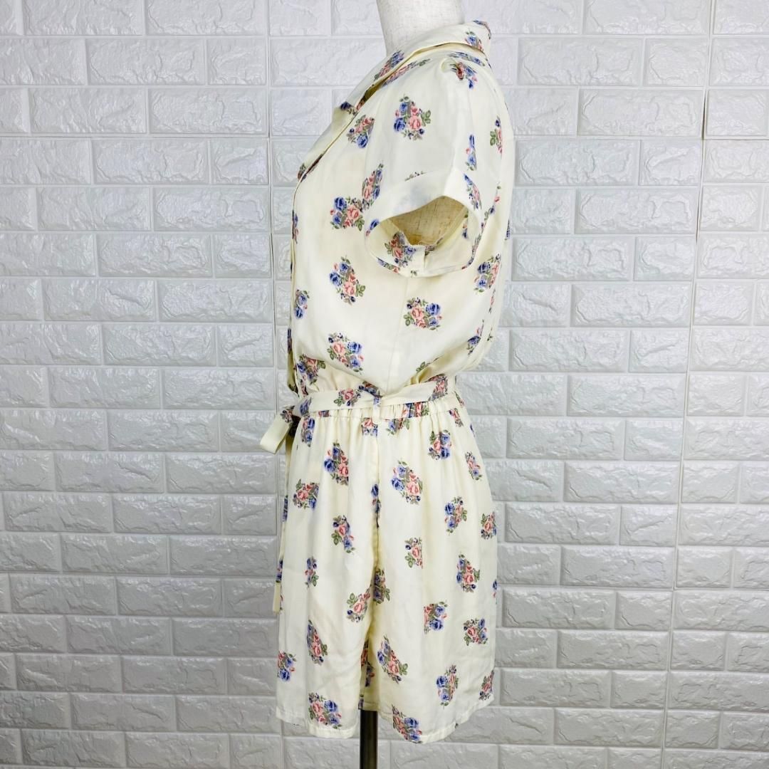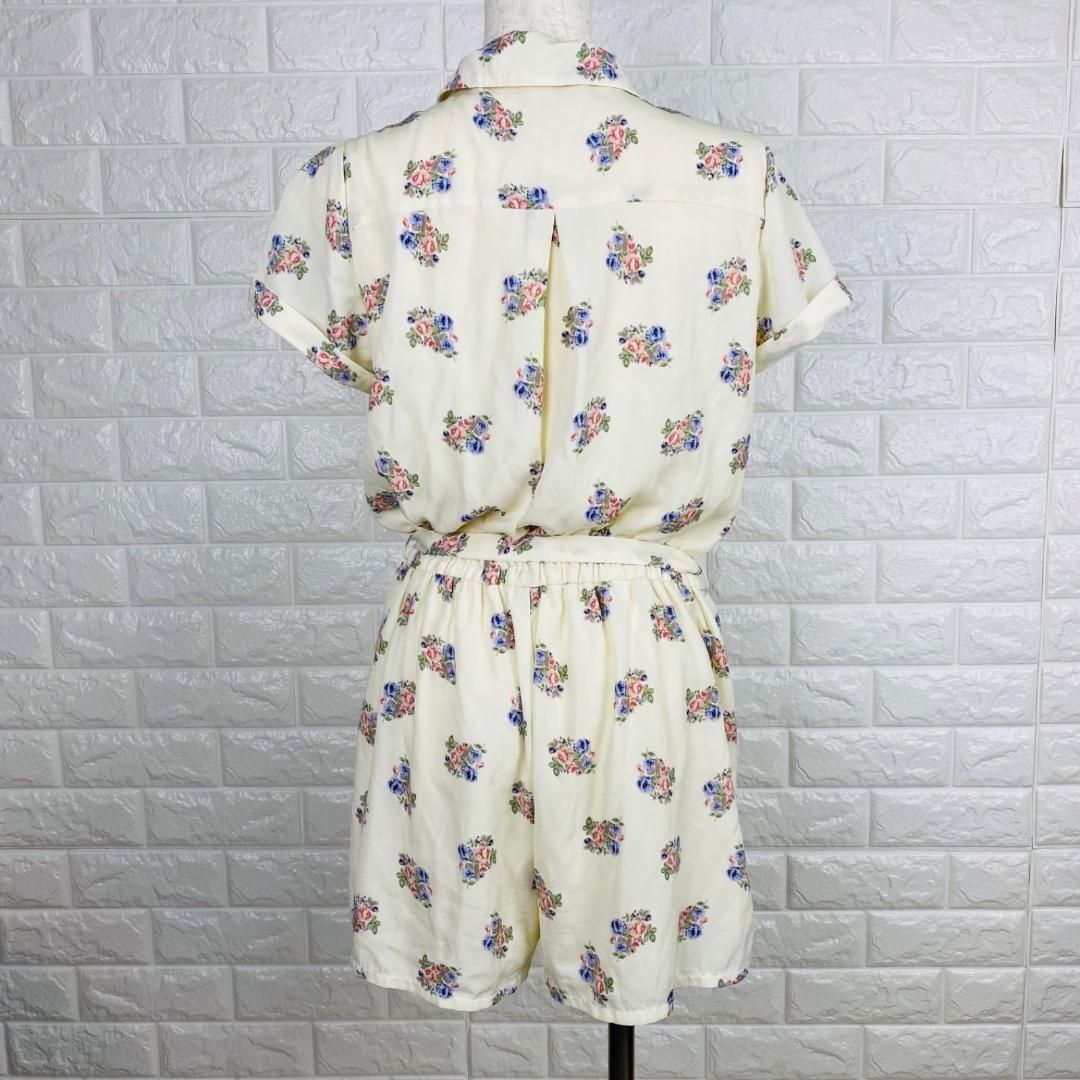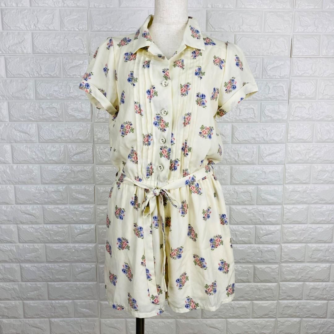 【A1739】 dazzlin ダズリン ロンパース オールインワン Mサイズ 花柄 半袖シャツ ハーフパンツ クリーム フェミニン 春夏