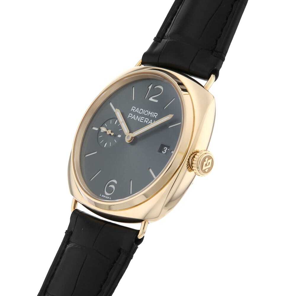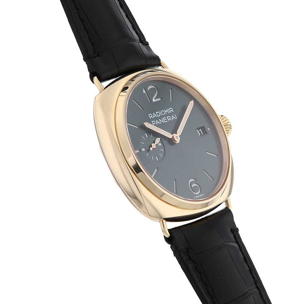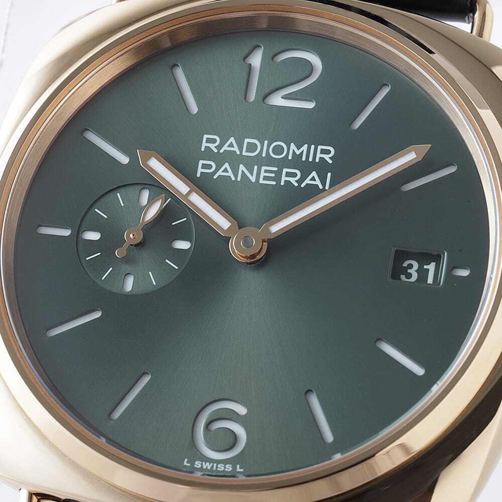 | モデル情報 | 1938年、軍事用として開発された伝説の腕時計「ラジオミール」。過酷な環境下での使用を想定し作られたため、強固なケースに加え視認性に優れる大きなインデックスを採用しており、 実用性を重視したミリタリーウォッチに仕上がっております。クアランタはイタリア語で40を意味する通り、直径40mmサイズのケースを有することが特徴です。ムーブメントは3日間パワーリザーブの自社製自動巻きキャリバーP.900が搭載されています。 |