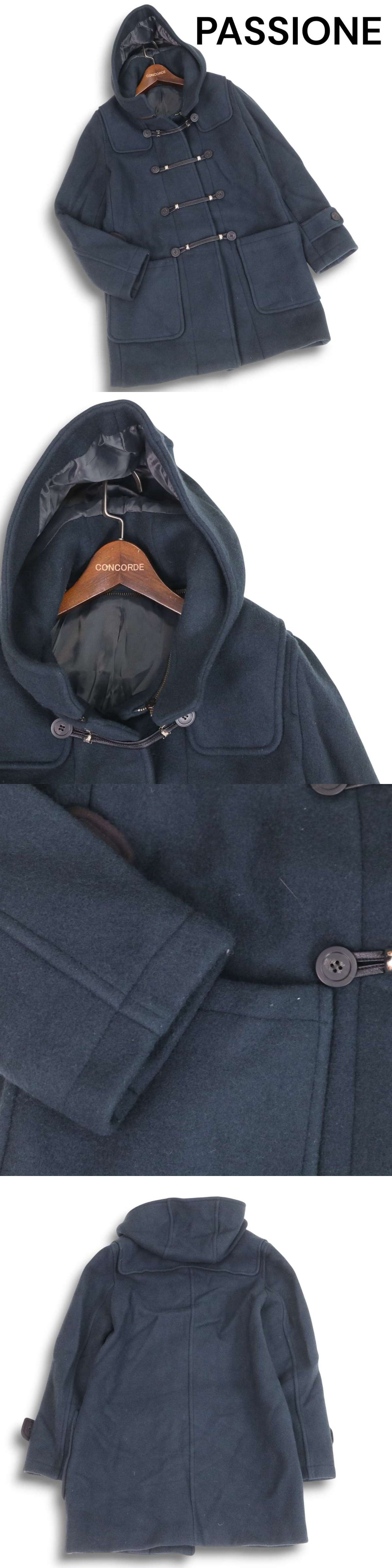 PASSIONE パシオーネ 秋冬★ メルトン ウール ダッフル コート Sz.38 レディース ネイビー