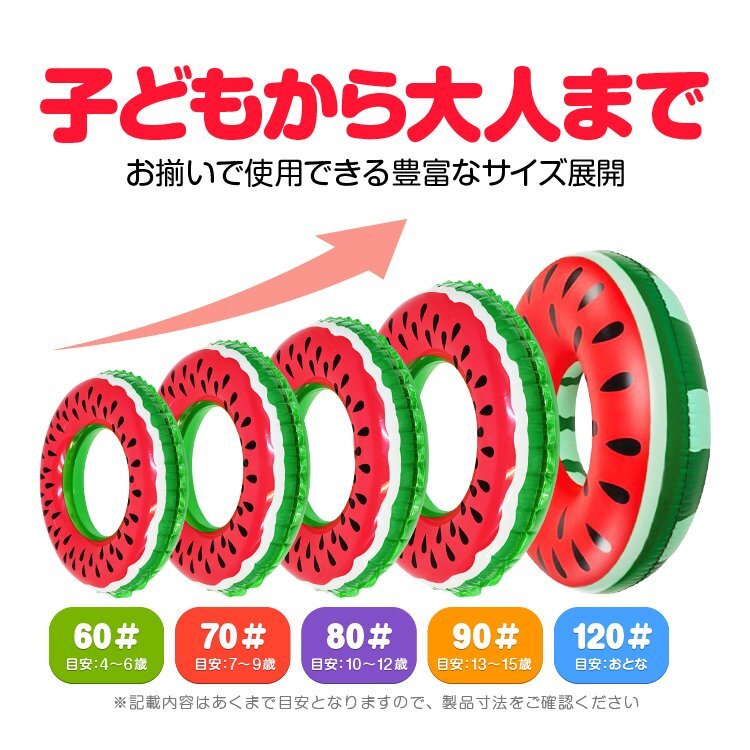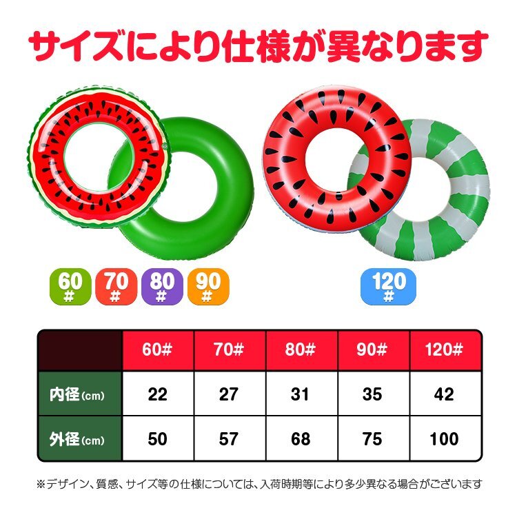 ◆スイカ浮き輪 カラフルうきわ PVC素材 子供用/大人用 60#/70#/80#/90#/120# リング型 フロート おしゃれ かわいい 夏 海水浴 川遊び 波のりプール 流れるプールに【90#】SIKUKW10