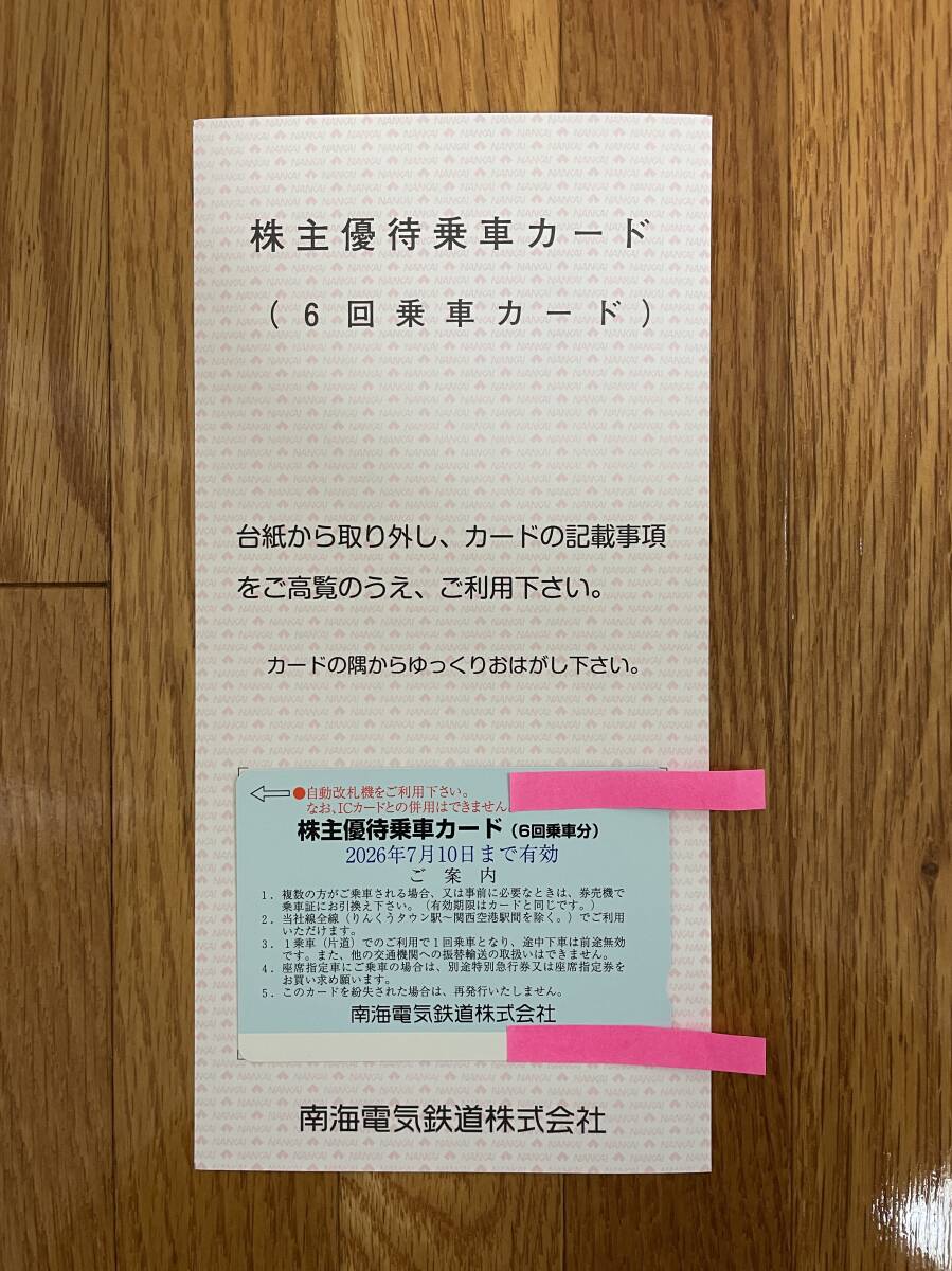 【即決、送料無料、追跡有】南海電気鉄道 株主優待乗車カード(6回乗車分) 有効期限2026年7月10日