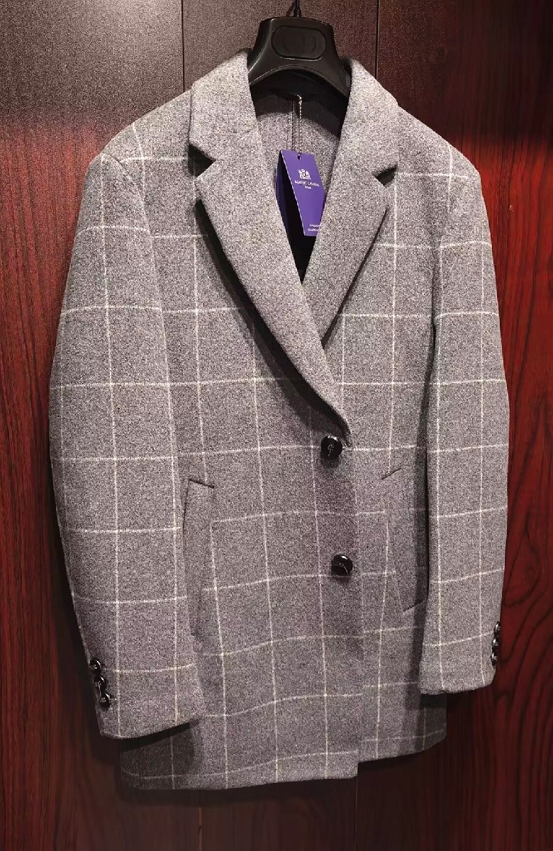 ROBERT CAVANI発※豪華・両面カシミア100%*イタリアン紳士・チェスターコートです。これは本当に素晴らしい1品。生地は最高級カシミヤ100%を使用しており、丁寧な作りで、肉厚なカシミア生地は重厚感が抜群、ヨーロッパ製造・紳士、高級、肉厚の3拍子揃った最高級コート。 大人の域を飛び越えたダンディーでシブい1着 上品なブラックストライプ柄が大人感を出しています。 スタッフ試着でその高級品質を確認しております。落ち着いた灰色はluxuryな雰囲気がユーザー様の魅力を発揮します、ラとにかく ディテールが素晴らしい。