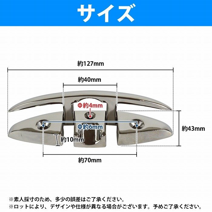【送料250円】折りたたみ式 フラット クリート 5インチ 127mm 316 ステンレス製 船 ボート カヤック マリン 係留 フリップアップクリート