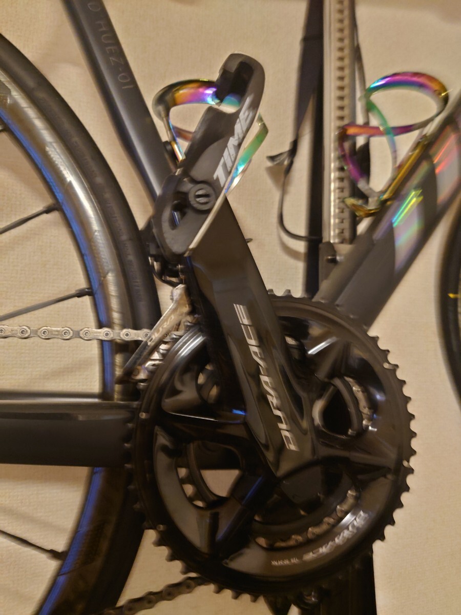 コンポは9200DURA ACE パワーメーター付です(ペダルはTIME XPRO 15です裏面は汚れが目立ちます、ストックしている新品のクリートをお付けします:ご希望があれば使い古しで恐縮ですが今使っている物もお付けします)