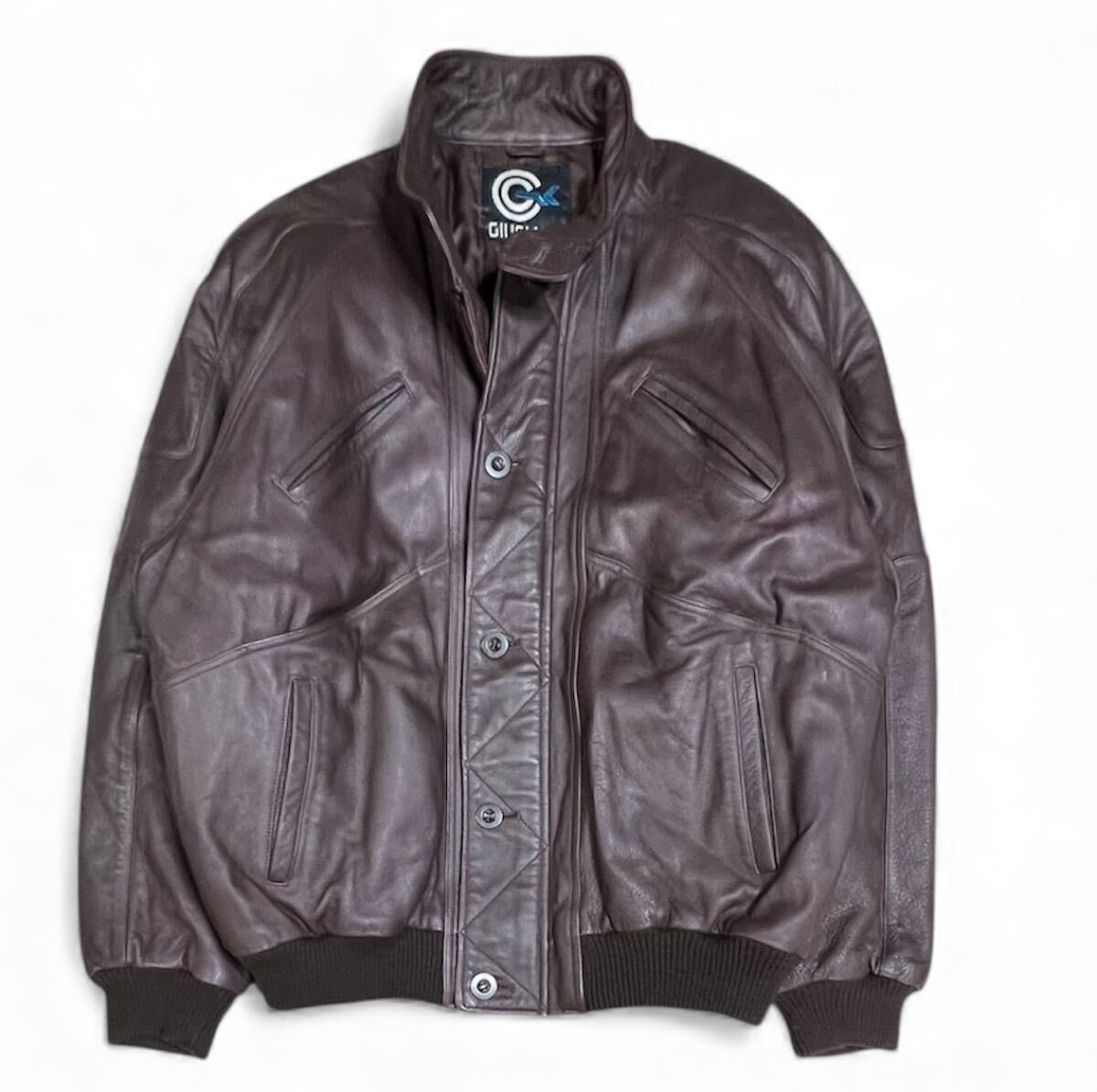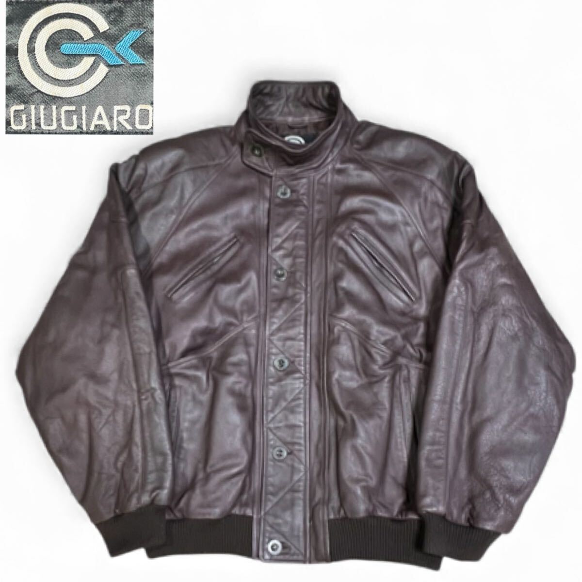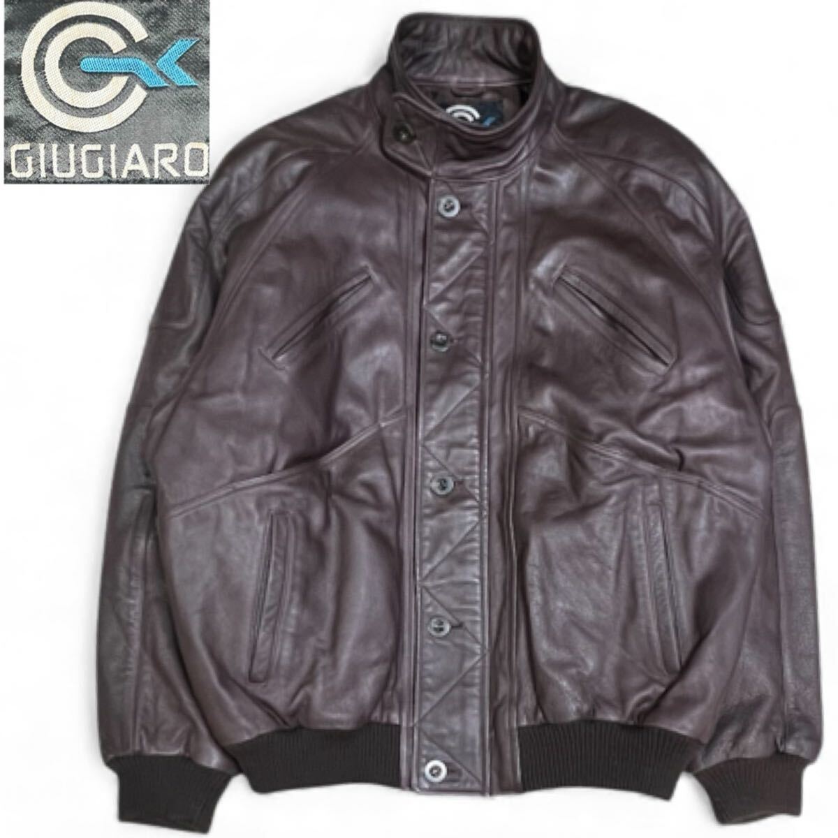 ● 80s-90s ヴィンテージ/希少品 GIUGIARO ジウジアーロ/ライダース ジャケット/スタンドカラー/本革ジャケット/大きいサイズ L ボルドー系