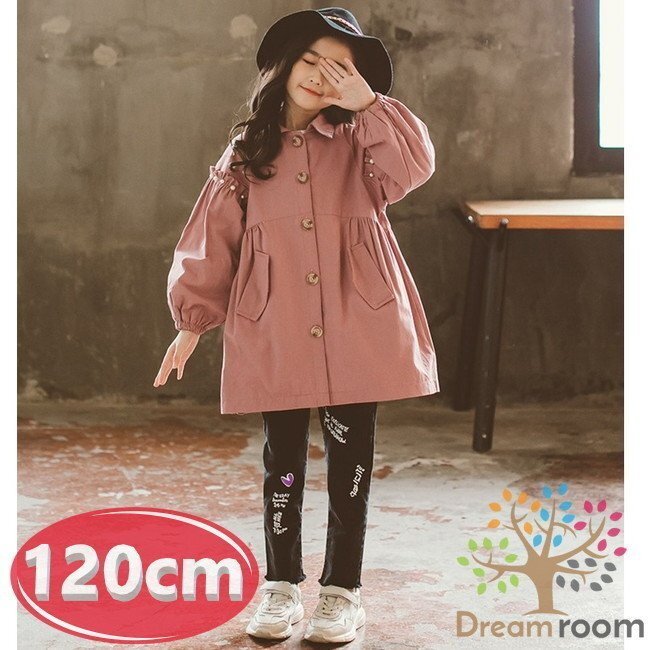 1スタ☆【120cm】バルーン スプリングコート ピンク アウター ジャケット 子供服 女の子 韓国子供服 モッズコート 秋 春物