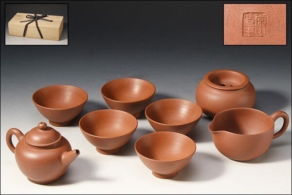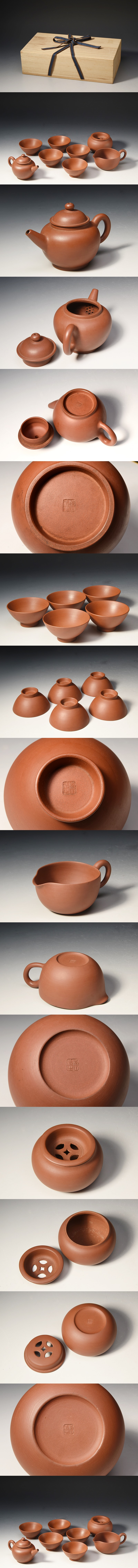 U08312 初代 山田常山 常滑 朱泥 紫砂 茶器 一式 茶器揃 煎茶 /55D