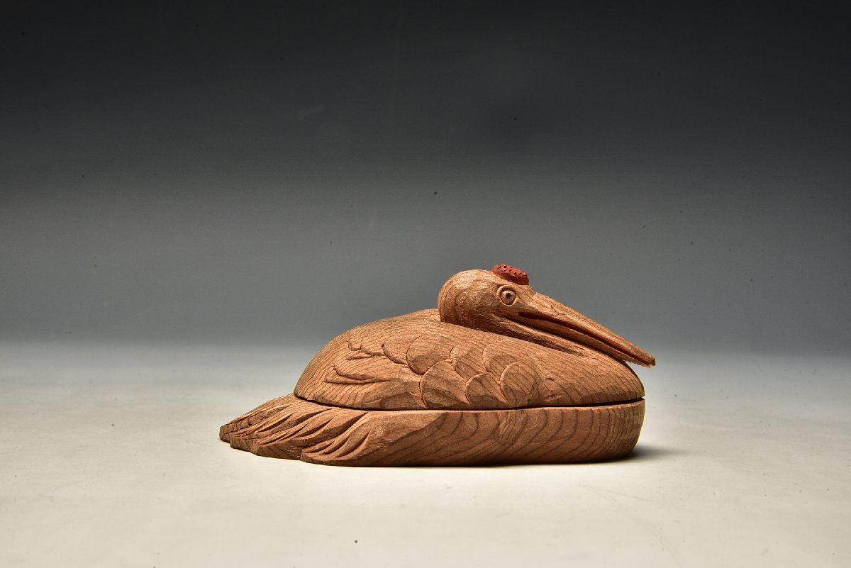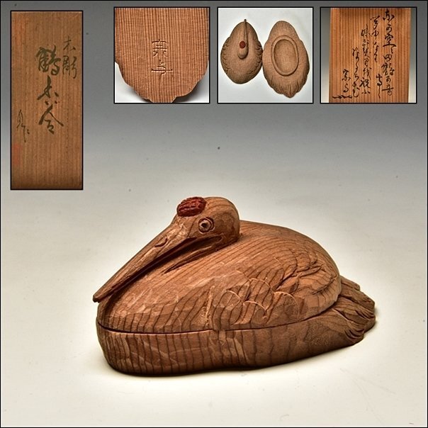 SP6346 宗与 鶴 香合 蓋物 合子 茶道具 香道具 共箱