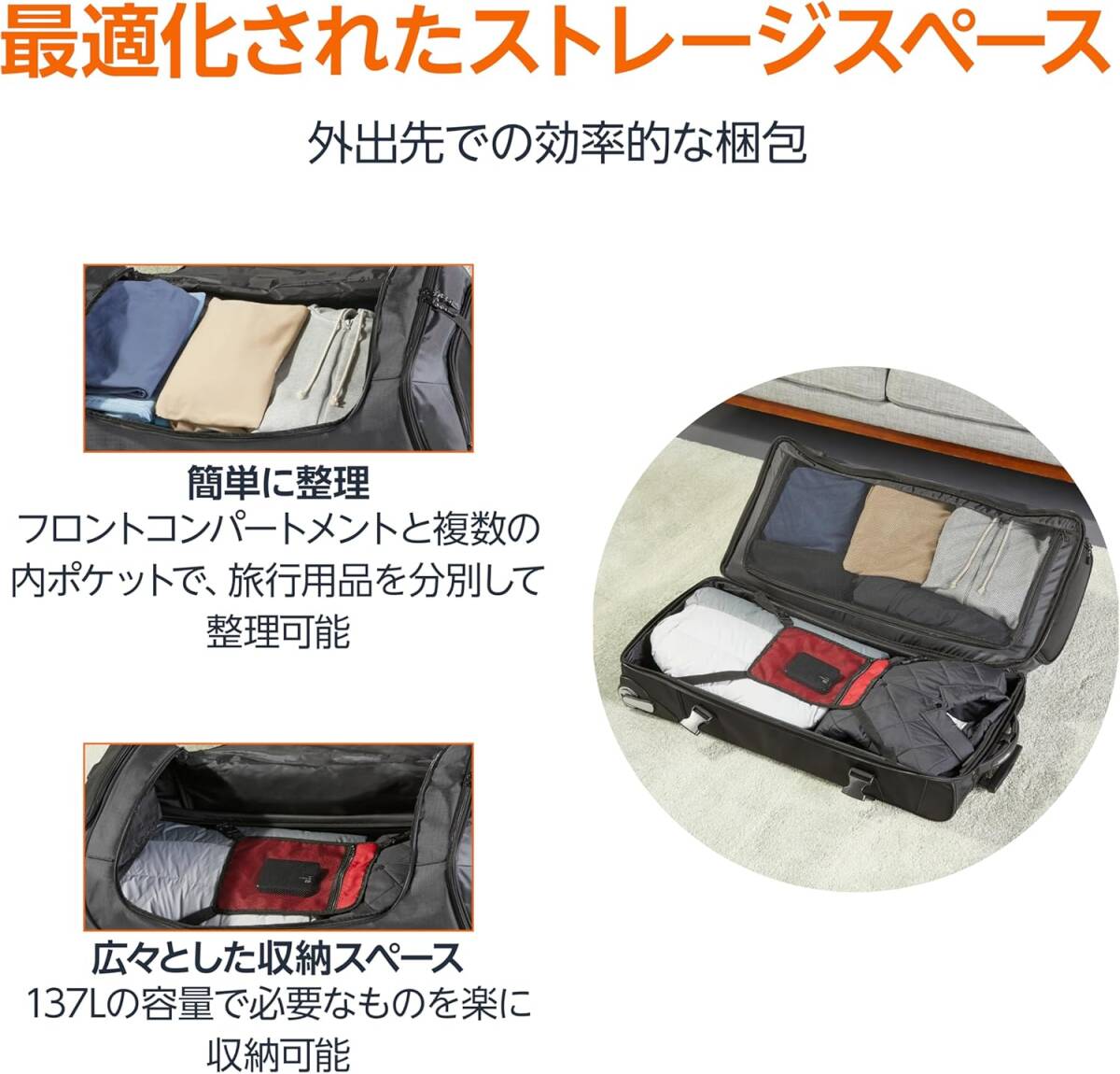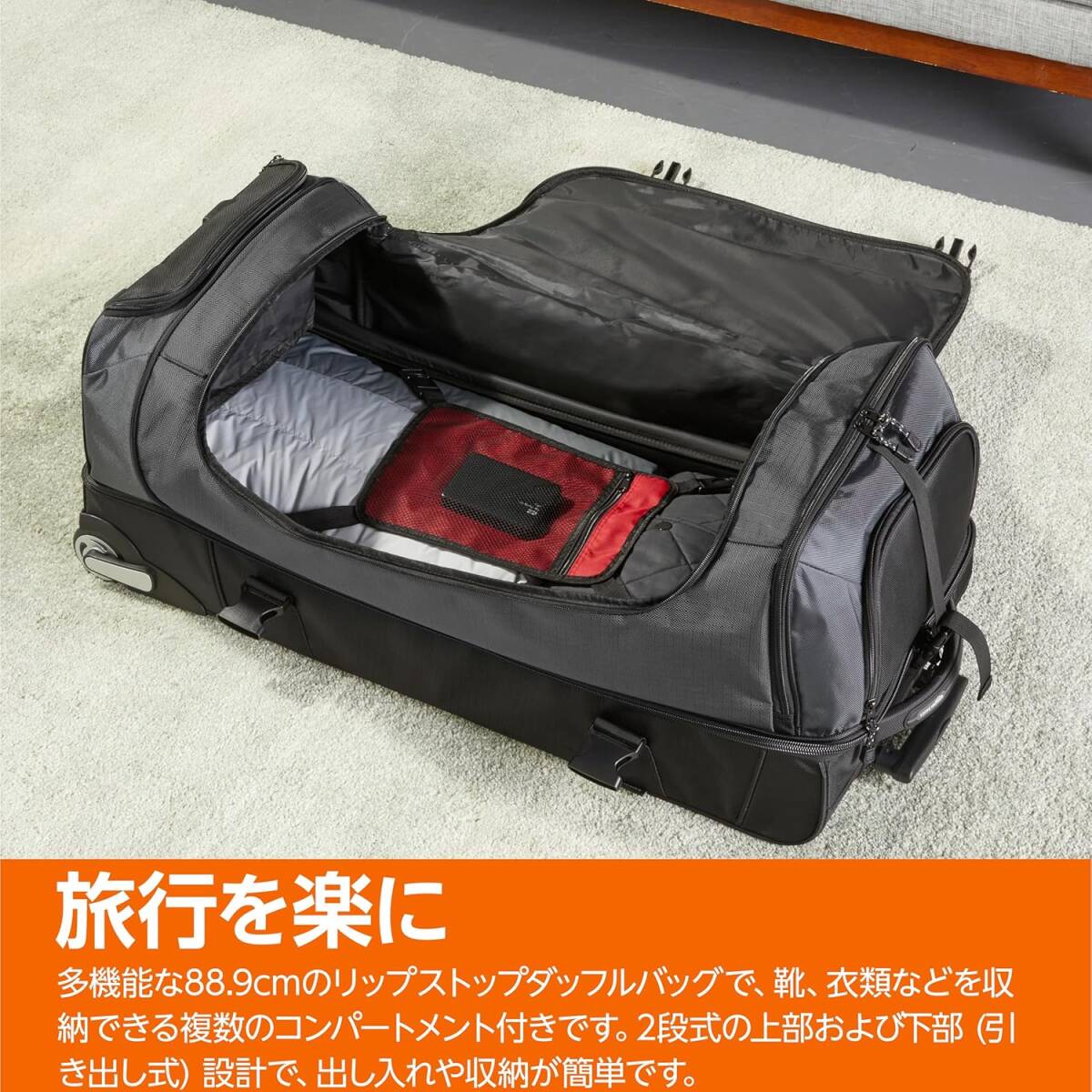 想像を超える収納力 大きい ブラック色 89cm ベーシック ボストンバッグ ソフトダッフルバッグ ハンドルとキャスター付き
