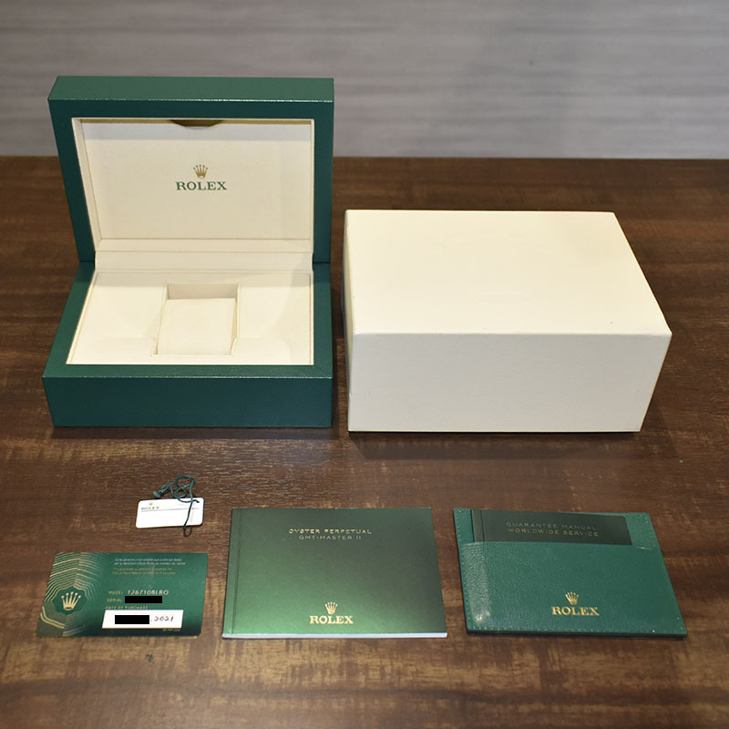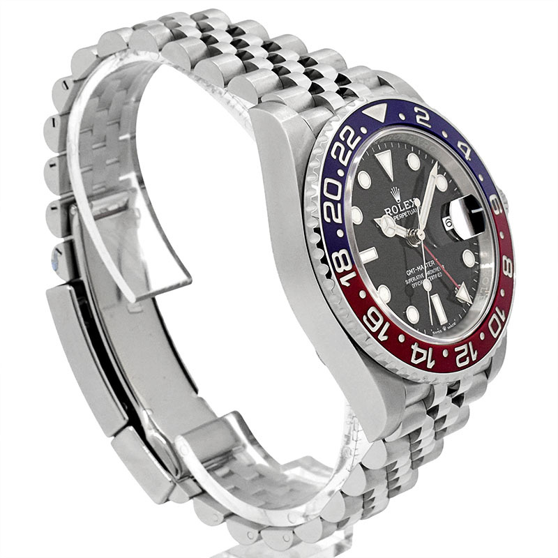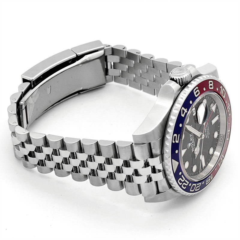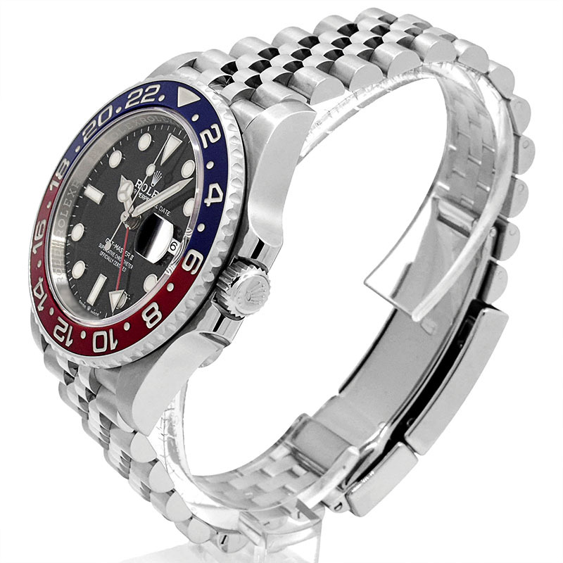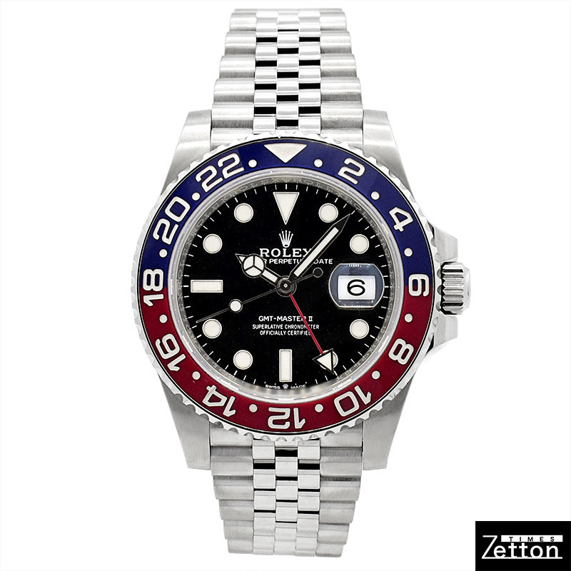 | 店長メモ | 初期を彷彿とさせる赤/青ベゼルのGMTマスター、通称「ペプシ」モデルです。 ベゼルの素材にはセラミックが用いられ、見た目だけではなく対傷性等にも優れた仕上がりになっております。 GMT(2カ国の時間表示)機能付きでビジネスや海外旅行でも安心で、100メートル防水と実用性も抜群のモデルです。 |