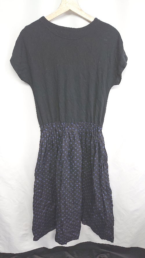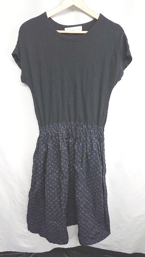 ◇ ⊂ NATURAL LAUNDRY ナチュラルランドリー 水玉柄 半袖 膝下丈 ワンピース サイズ2 ブラック系 レディース E