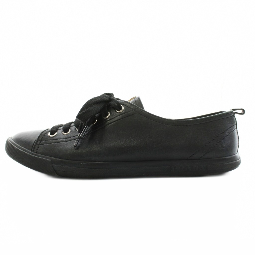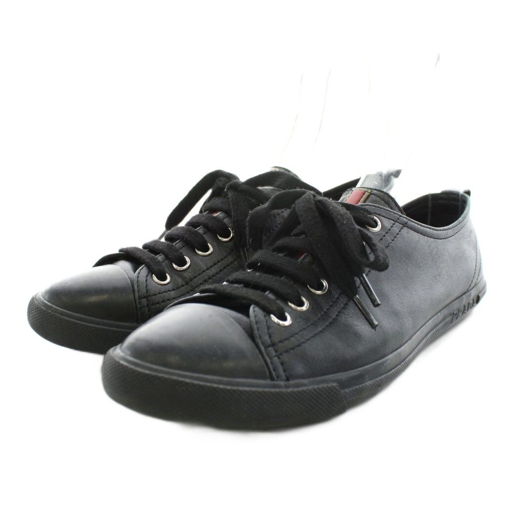 プラダスポーツ PRADA SPORT スニーカー シューズ レースアップ レザー 38 黒 ブラック 5811 /AN18 レディース