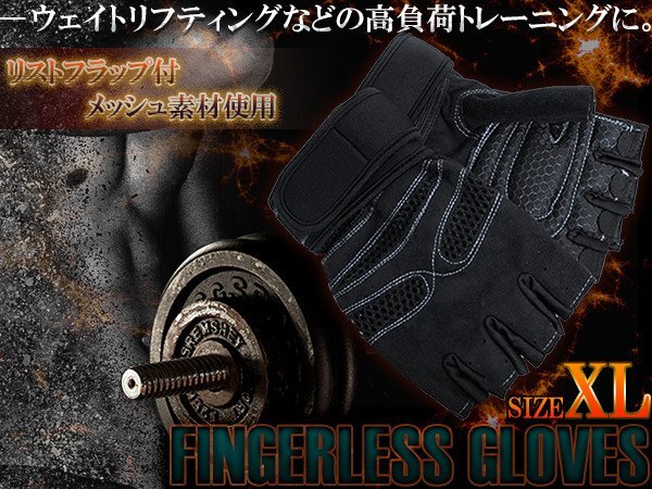 フィンガーレスグローブ ウエイトトレーニング 指なし トレーニンググローブ XLサイズ ブラック 黒 ジム ウェイトトレーニング 指だし 手袋