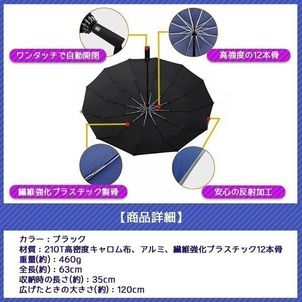 逆さ傘 折りたたみ ワンタッチ 自動開閉 12本骨 120cm コンパクト 折りたたみ傘 軽量 大きい 晴雨兼用 ビジネス 通勤 父の日 黒 ブラック