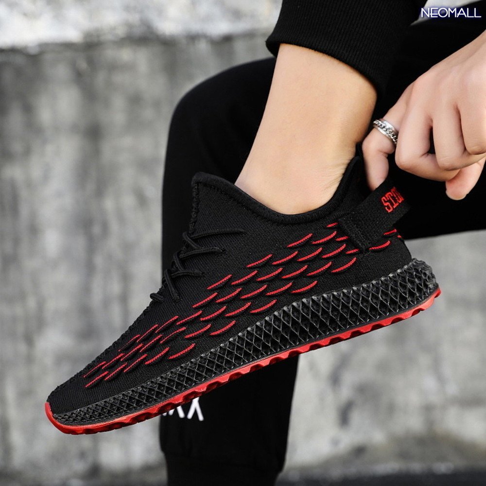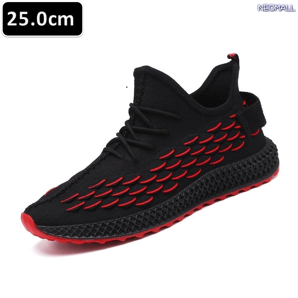 人気商品 ☆ メンズ スニーカー 25.0cm ブラック×レッド 靴 シューズ 防滑 ランニング ジョギング 通勤 通学 旅行 【400】