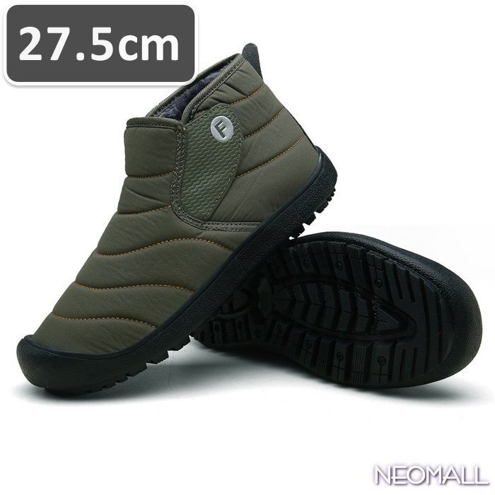 ユニセックス スノーシューズ 【869】 27.5cm オリーブ ムートンブーツ スニーカー ウィンターブーツ 裏起毛 防水 防寒 防滑 冬用靴 綿靴
