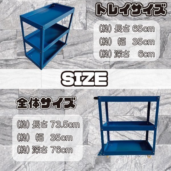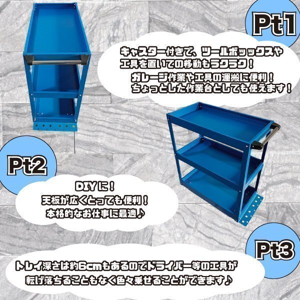 3段 サービスツールカート ツールワゴン 青 サービスワゴン 工具箱 ワゴン ワーキングカート 工具 収納 キャンプ インダストリアル