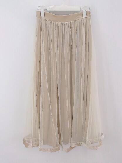 ◇ natural couture ナチュラルクチュール チュール ベロア ロング プリーツ スカート サイズF ベージュ レディース P