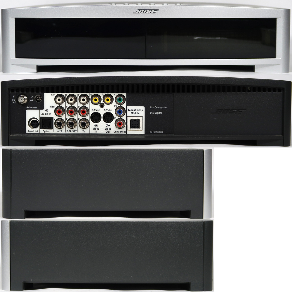 詳しい性能はネット上でお調べください。出品は画像の物のみです。リモコンの電池も付属しません。FMラジオのアンテナはないです。使用品ですので汚れや擦れが有ります。擦り傷が有る箇所もあります。ウーハー上部の化粧板の表地が浮いている箇所があります。動作確認ができた箇所のみご説明します。リモコンは問題なく操作できました。(ただし押しても赤外線テストで反応しないボタンがありました。反応しなかったのはInput on/off , on/off, on/off , Lastボタンが反応しませんでした。メディアセンター(DVDプレーヤー)上部のボタンは問題なく動作しておます。液晶も問題なく認識できました。背部のジャックで確認できたのは電源ジャック、ウーハージャック、AMアンテナジャックとビデオジャックのみです。その他のジャックはテストもしておりません。DVDやCDも問題なく動作しました。AMラジオも問題なく視聴できました。スピーカー及びウーハーも問題なく音が出ました。新品ではないので新品時よりは音は違うと思いますが、よほど音にこだわりがなければ普通に聞く分には問題はないです。分かることは以上です。出品前にもきちんと基本的な事は問題ないかチェックした上で出品していますが、発送後になにか問題がありましてもサポートは出来ませんし、返品やクレームは一切受け入れられませんのでそれを納得した上で御入札下さい。