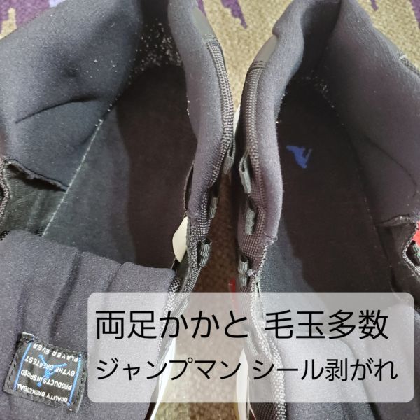 ・両足かかと部に細かい毛玉が多数あり、ジャンプマンシールが剥がれています。
