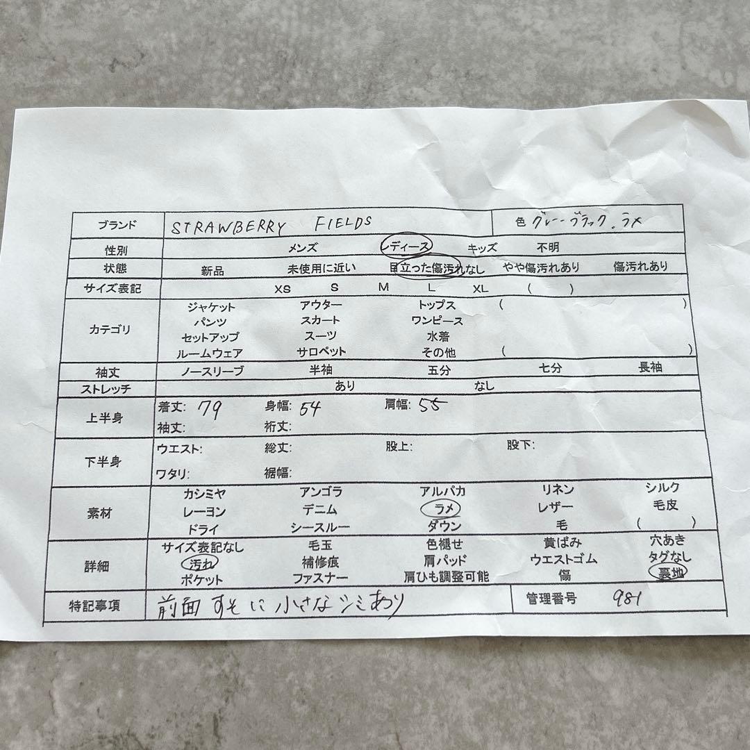 981 ノースリーブチュニック 裏地あり ミニワンピース グレー 黒 ラメ 23FAC7
