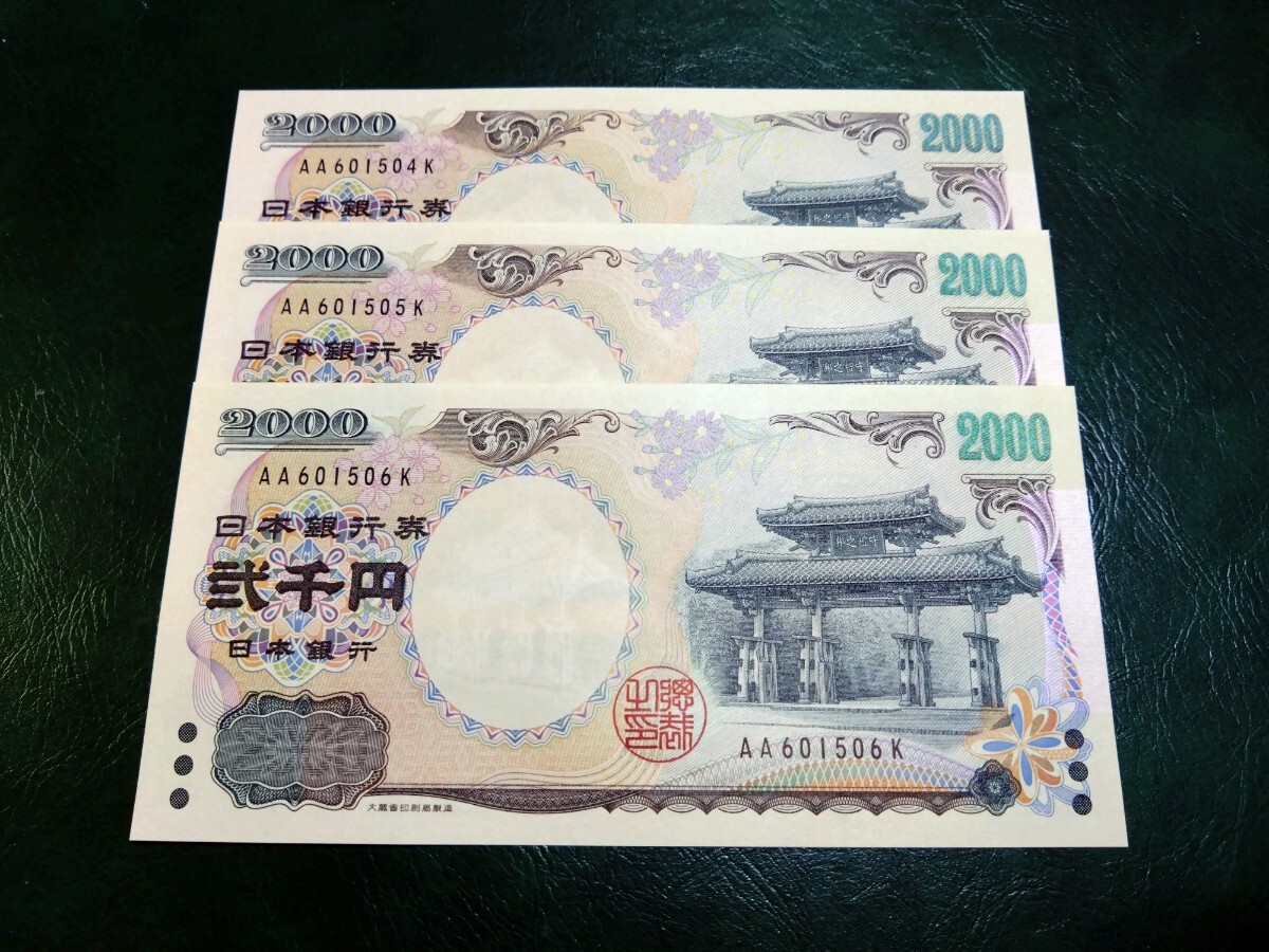 日本銀行券D号2,000円 守礼門2,000円で、シミ、やけ、折り目のない、コーナーもしっかりした貴重なピン札です。