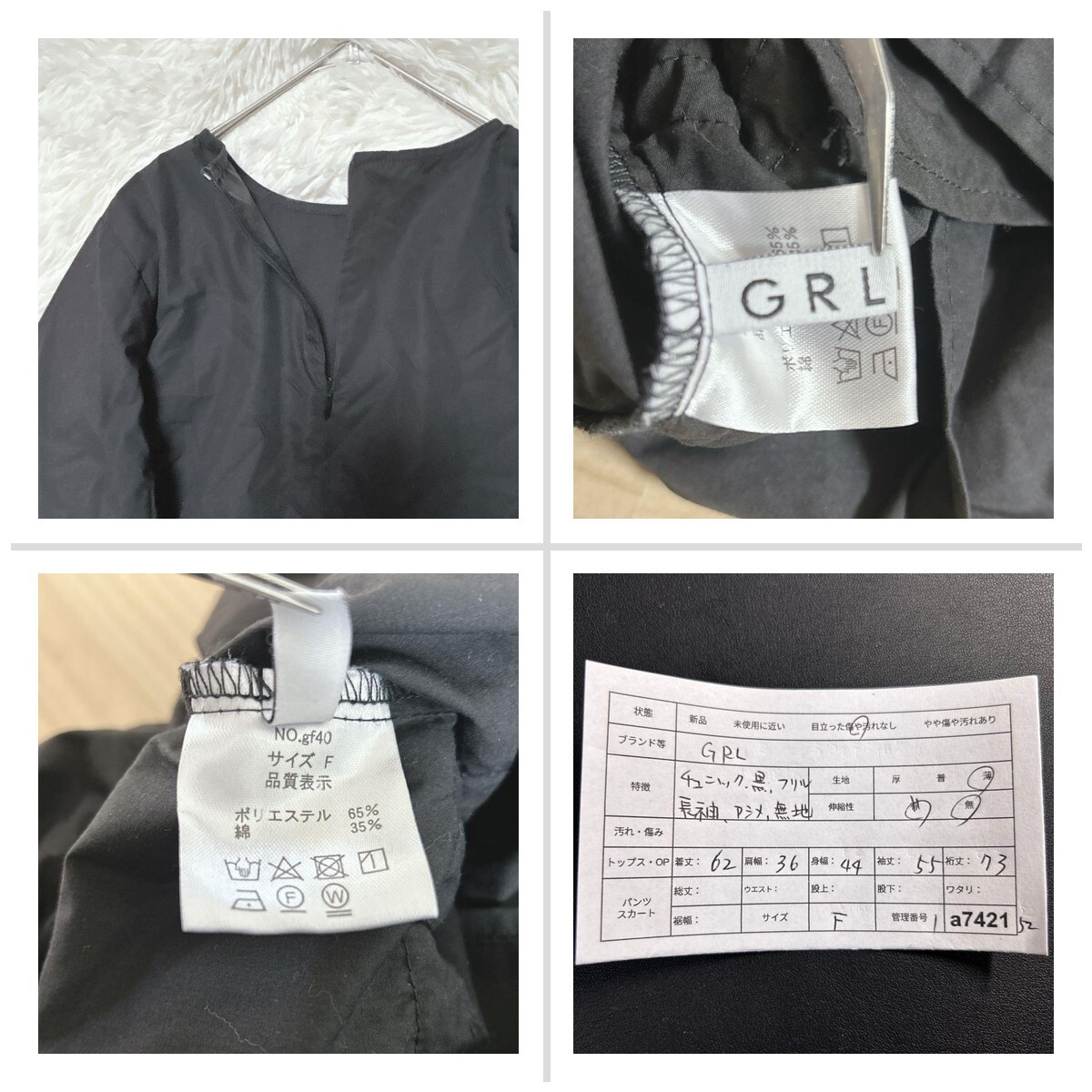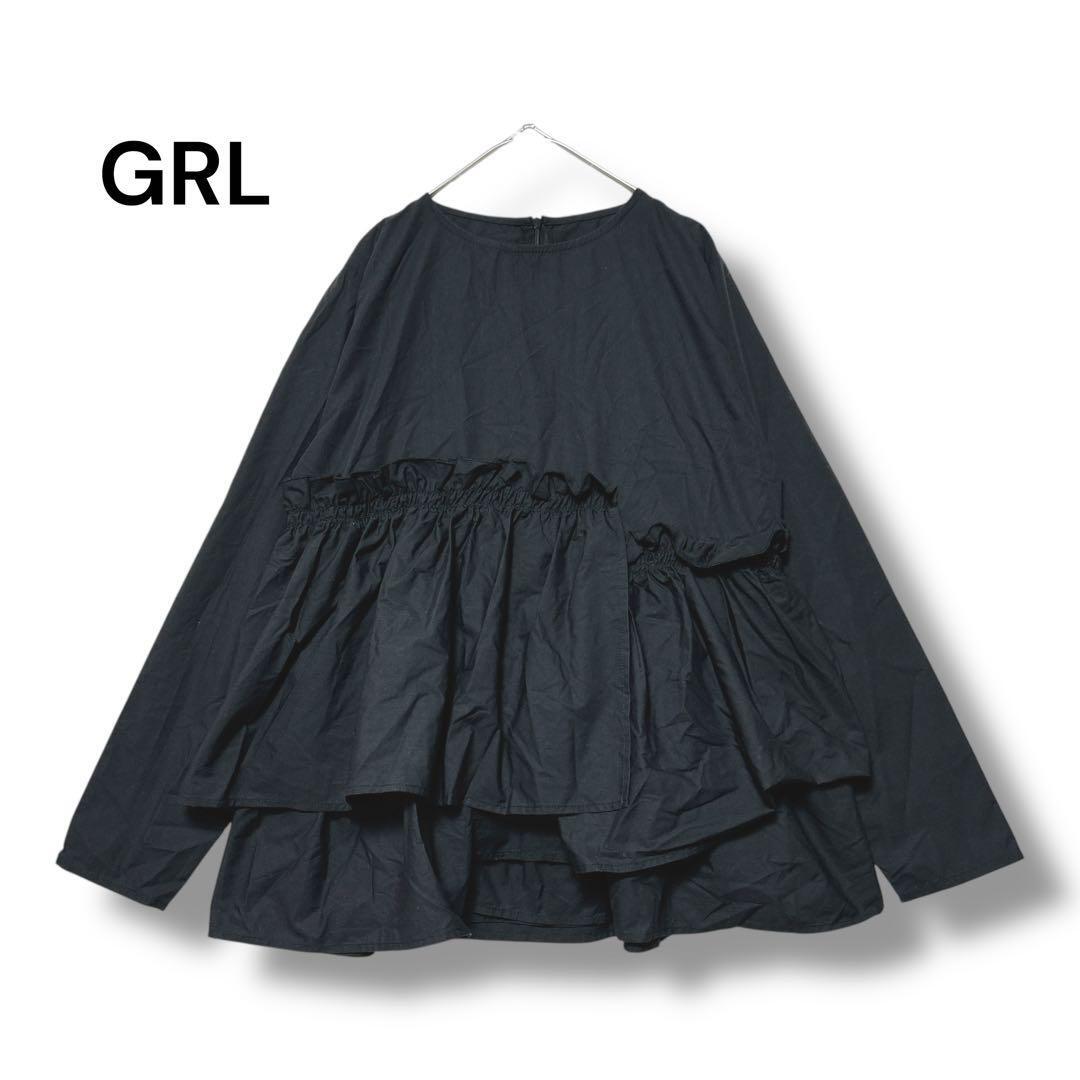グレイル チュニック 黒 フリル 長袖 F アシンメトリー CC825F