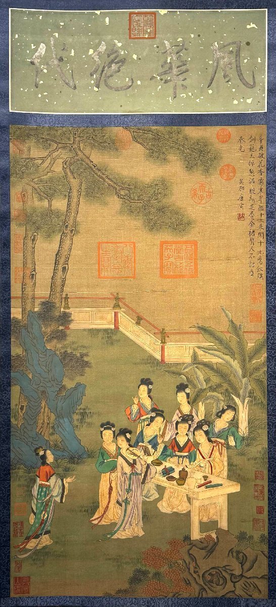 【安】中国明時代画家「唐寅書」絹本「仕女図」掛軸 中国画 墨寶妙品 中国書道 古美術 312 サイズ(約寸) |