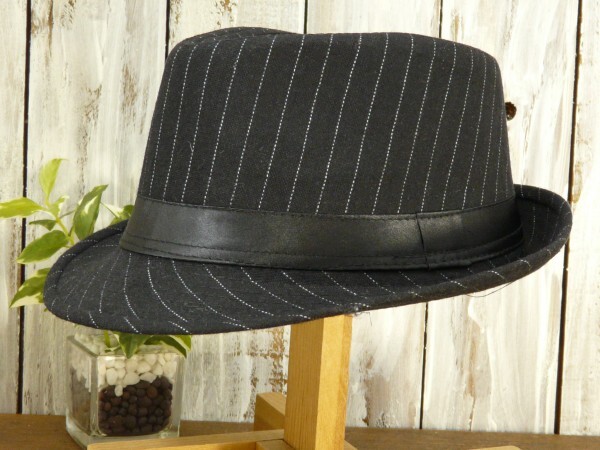 フェドラハット ストライプ ブラック 送料\450 サイズ調整可 男女OK!メンズ レディース ボルサリーノ パナマ 中折れ