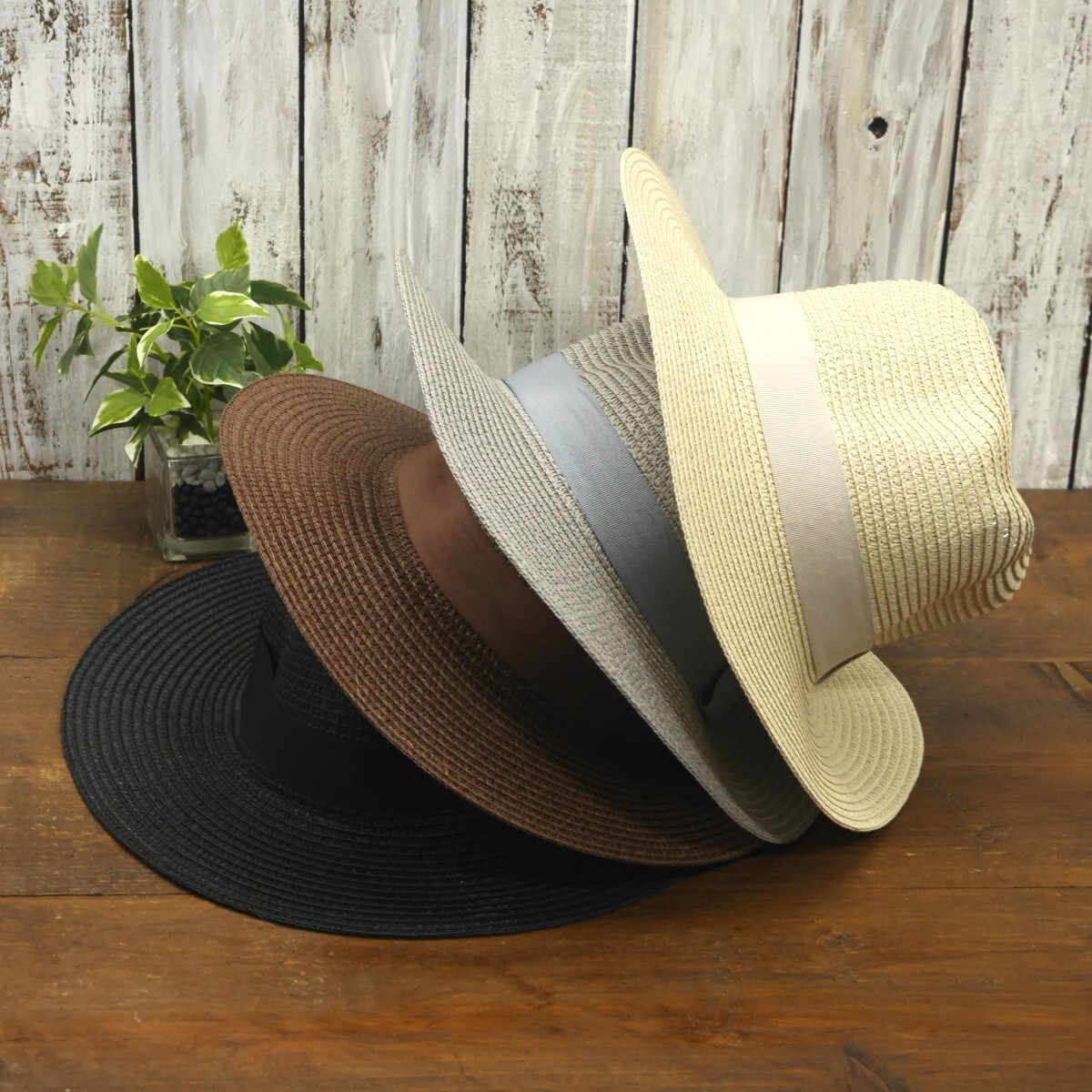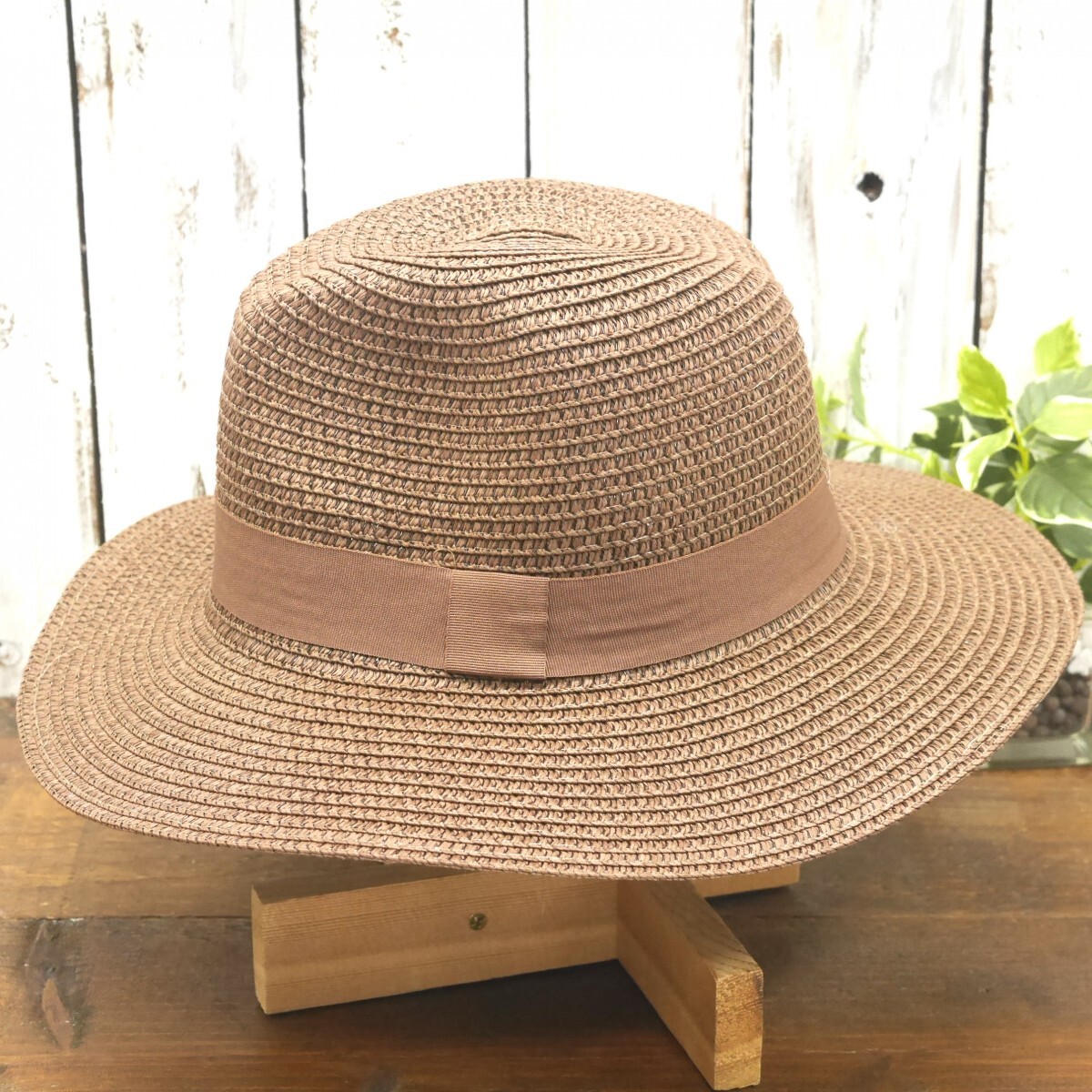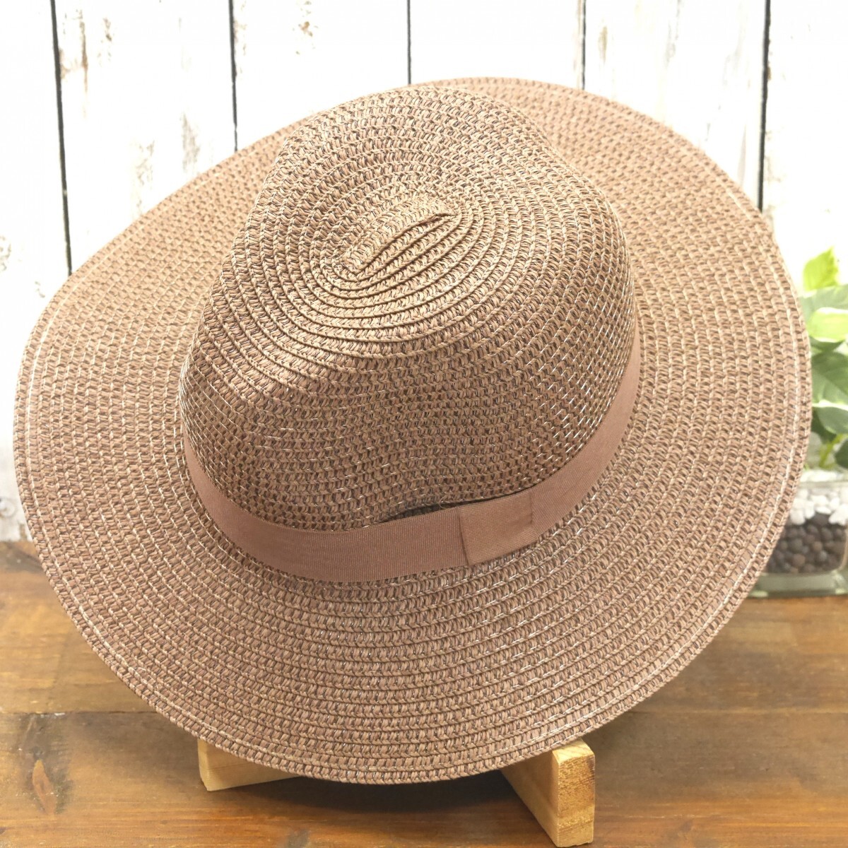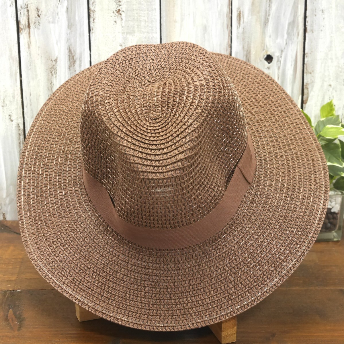 つば広 ワイドブリム サイズ調整 フェドラハット ブラウン シンプル 男女OK 送料\350 ストローハット 中折れハット パナマ ボルサリーノ