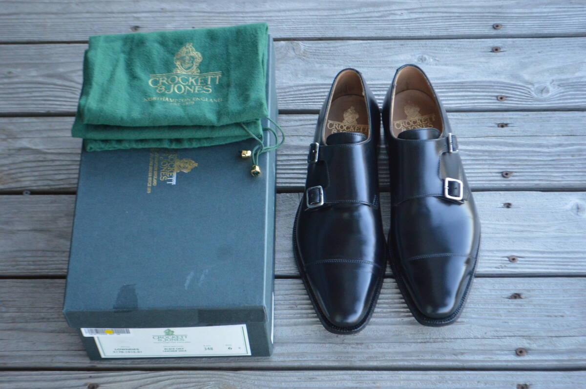 着用数回 CROCKETT&JONES LOWNDES 6E ブラック ラウンズ ダブルモンク 348ラスト