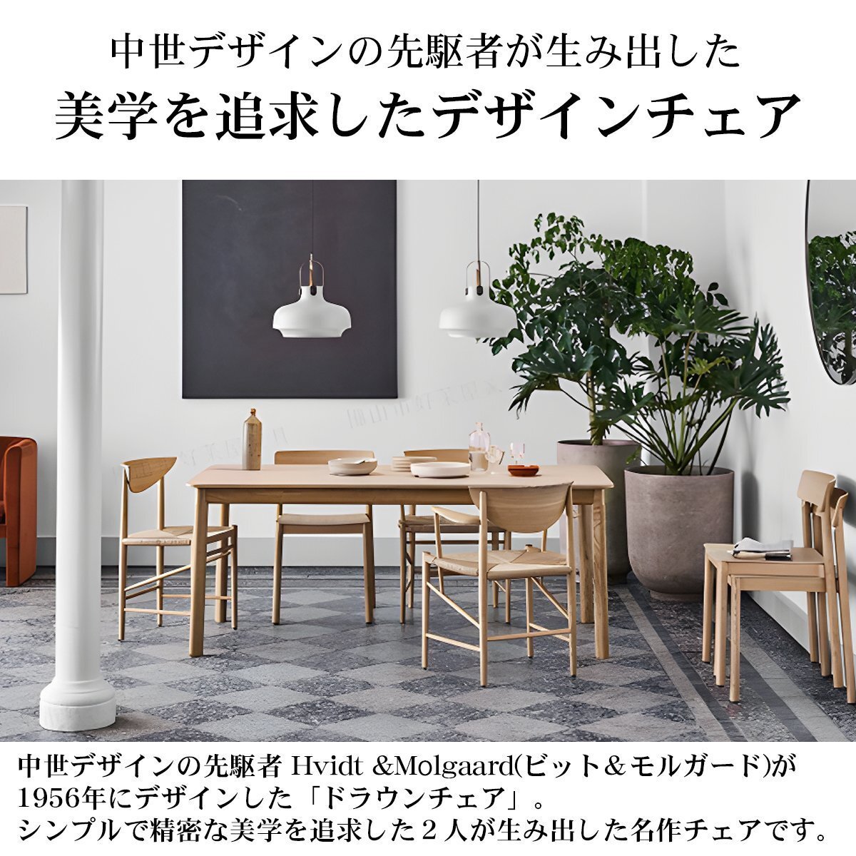 ![]() デンマークの中世デザインのパイオニア的存在ピーター・ビット&オーラ・モルガード・ニールセンが 1956年にデザインした「DRAWN ARM CHAIR HM4」 デンマークのモダニズムのリーダーとしての地位を確立し、 シンプルかつ精密な美学を追求した彼らの生み出すデザインは今でも古さを感じさせず、 どんなテイストのルームにも自然に馴染みます。 ビット&モルガードの2人は共に優れた技術力を持っており、 ピーター・ビットはコペンハーゲンの美術工芸学校でキャビネット作りを学び、伝統的な職人技を身に付け、 モルガードはデンマーク王立芸術アカデミーでカーレ・クリントに師事して家具デザインを学びました。 そんな高いレベルの技術力を持つ2人が作り出した名作チェアは空間をガラッと引き締め、 ワンランク上の北欧モダンなお部屋を作り出してくれます。 一番の特徴であるペーパーコードは、卓越した技術を持った職人による手作業で施され、 目を見張る完成度と美しさで一脚に使用されるペーパーコードの長さは400メートルにもおよび、 熟練の職人でさえ、一脚仕上げるのに8時間から10時間を要します。 DRAWN CHAIRは伝統的なクラフトシップとオーガニックな素材にこだわりデザインされています。 半月型の背もたれとアーム部のカーブにこだわっており、身体に沿うような仕様で、座り心地も抜群です。 デザイナー: ピーター・ビット/Peter Hvidt&オーラ・モルガード・ニールセン/Orla Molgaard Nielsen 材質 座面:ペーパーコード フレーム:無垢材(アッシュ) カラー:ペーパーコード座面:ベージュ フレーム部分:ナチュラル サイズ:約 幅64cm*奥行き55cm*高さ88cm*座面高45cm 重量:約6kg |