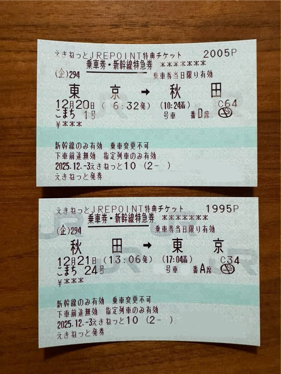 東京〜秋田間の片道は運賃10,010円、新幹線指定席代8,010円で18,020円かかります。