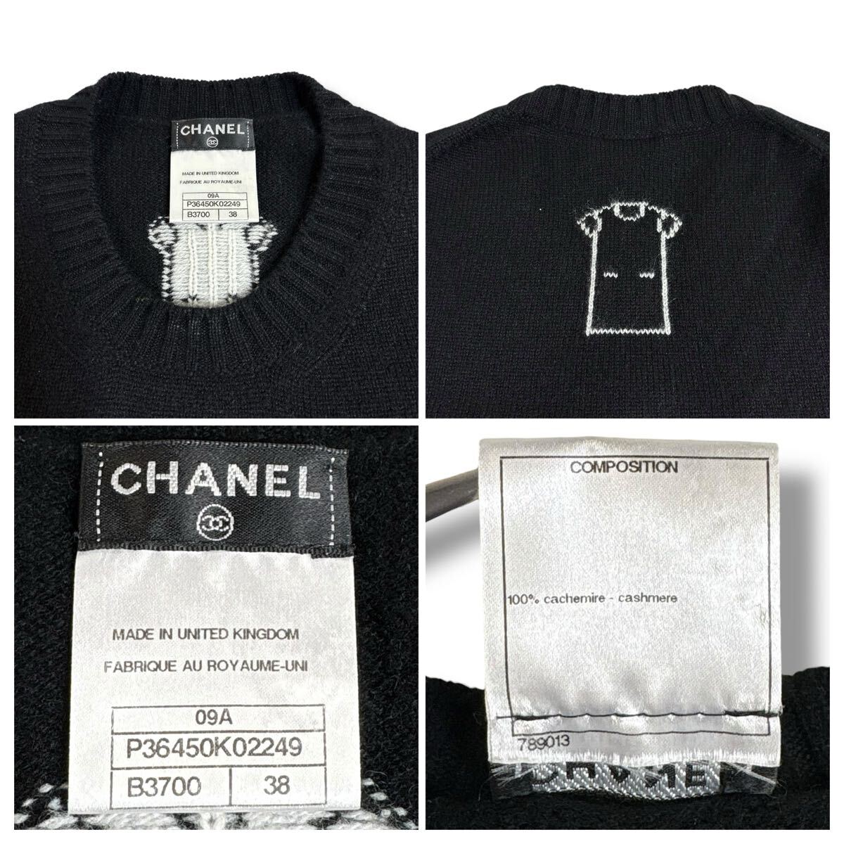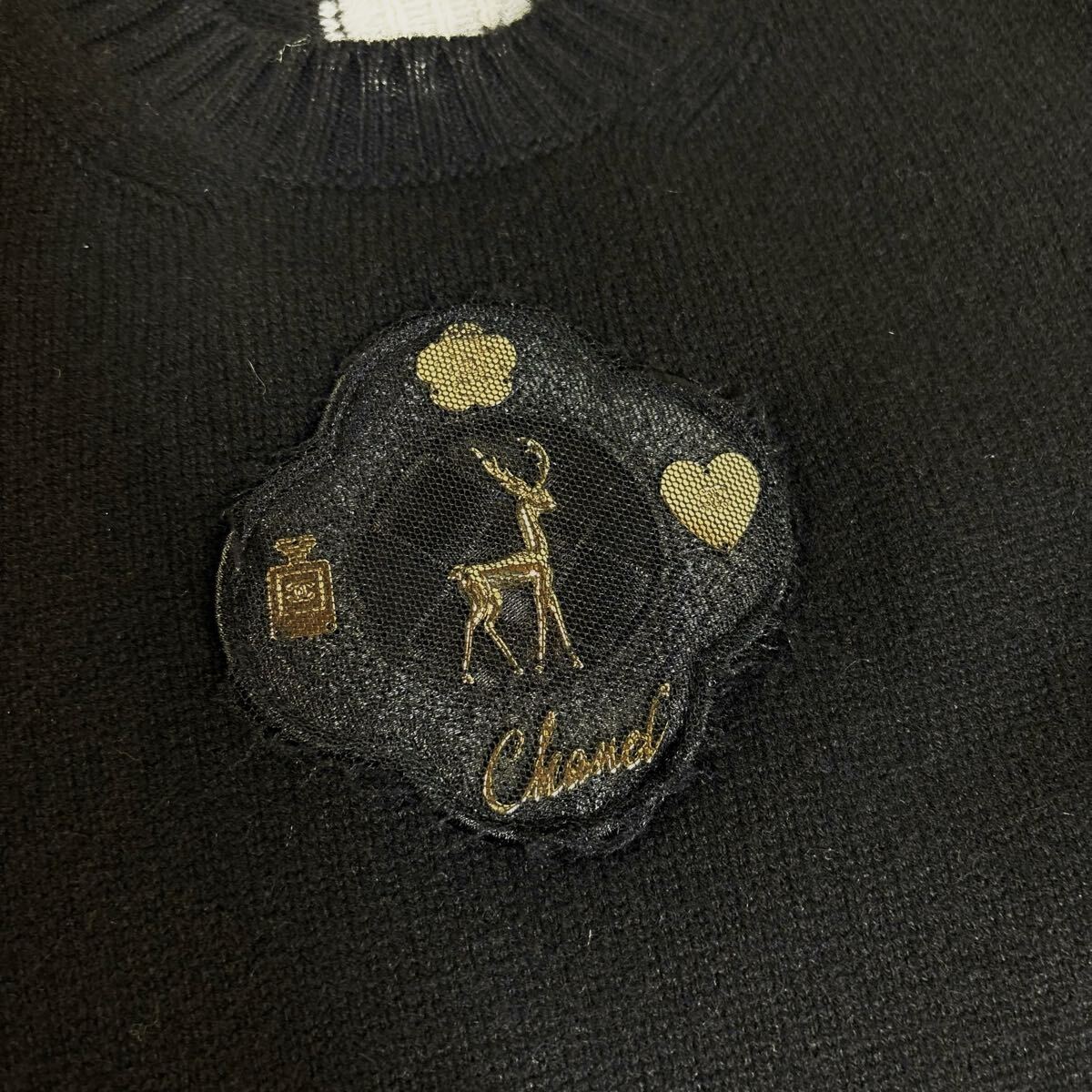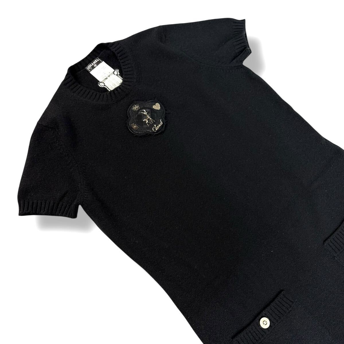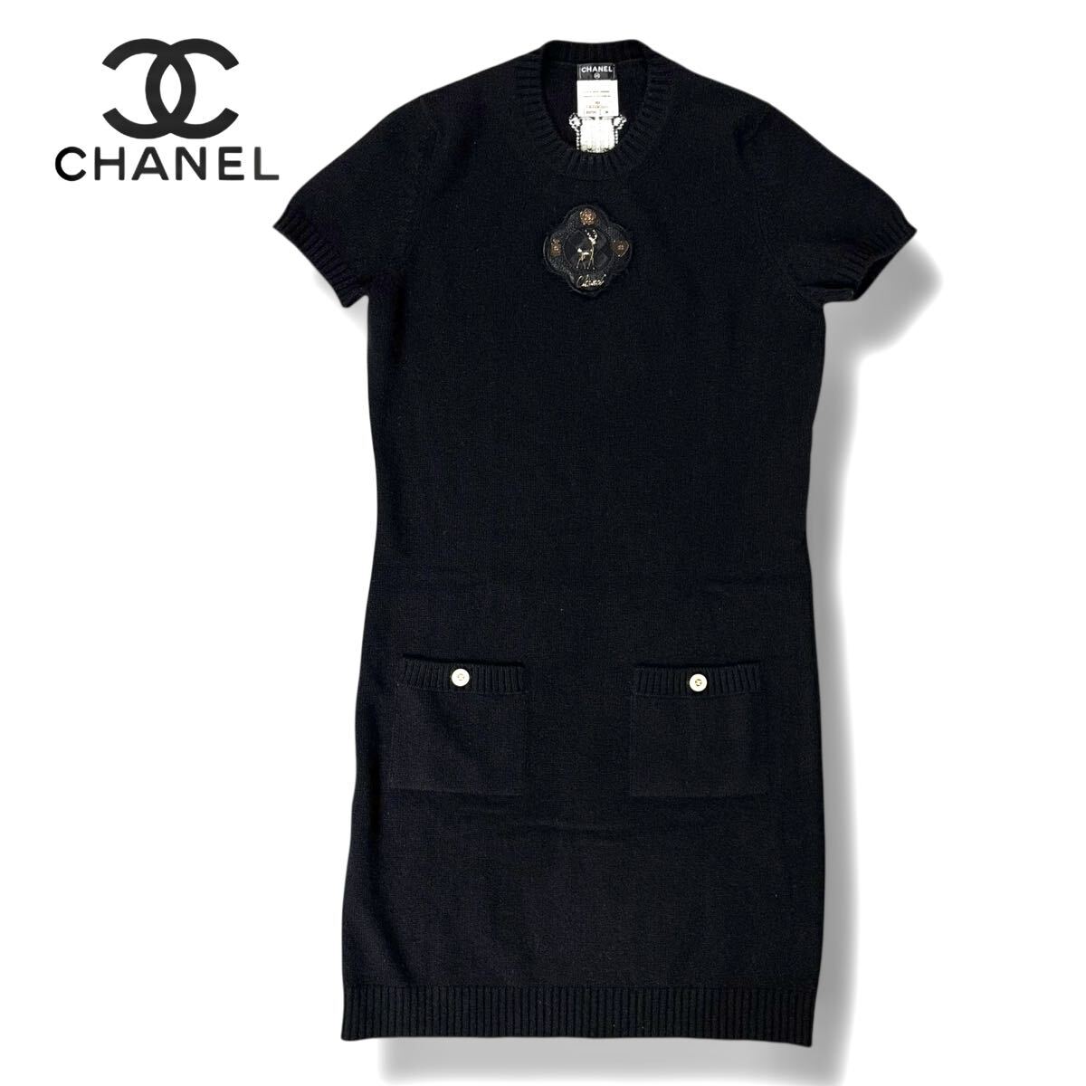 | 【美品】CHANEL シャネル カシミヤ ニット 半袖 ワンピース ココマーク トナカイ バンビ ブラック ゴールド ボタン 38サイズ 英国製 最高級 |